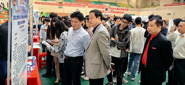 招聘会现场人头攒动,气氛热烈,每家企业展位前都挤满了精心准备好简历的同学。同学们积极与用人单位交谈,展现着江工学子的青春风采;用人单位细致介绍企业文化、福利待遇等情况,并真诚邀请江工学子的加入,毕业生也对就业市场有了较为清晰的了认识,部分校友企业还在相关学院举办了专场招聘双选会。