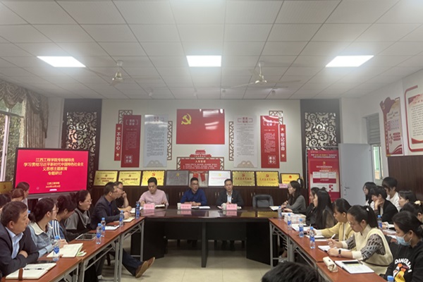 为扎实开展学习贯彻习近平新时代中国特色社会主义思想主题教育,贯彻落实党的二十大精神,推动学校高质量发展,2023年10月26日下午,学生工作部组织全体专职辅导员在抱石艺术学院202会议室开展以“结合习近平总书记关于教育强国的重要论述,聚焦推动学校高质量发展”为主题的主题教育专题研讨活动。学工部部长陈居权、学工部副部长李小力、学工部副部长邓美及各学院党总支副书记、专职辅导员参加,学工部副部长周卫忠主持。