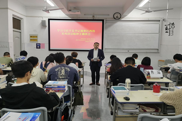 上下联动讲。学校重视上下联动全面讲,发挥引领效应,进一步汇聚接力奋进力量,努力推动学习习近平总书记在江西考察时的重要讲话精神进入思想、进入工作、进入实践,确保师生更加自觉地站在学校战略全局、政治大局上想问题、作决策、干事业。“我们将把习近平总书记在江西考察时的重要讲话精神作为当前和今后一个时期的首要政治任务,推出立足专业特色,以青年化视角、青春化语言设计制作的课程菜单供校内外各单位预约,进一步以讲促学、以学促思、以思促干,用‘青言青语’持续推动习近平总书记在江西考察时的重要讲话精神入脑入心。” 10月20日下午,在华亿平台“一站式”学生社区服务中心,学校新一期“匠心‘友’约”专题如期开展,来自“十百千宣讲团”成员--抱石艺术学院国奖获得者高烨东为40余名青年学生开展了宣讲,此次宣讲会不仅为青年学生强化了理论武装,而且为大家的职业生涯规划提供了更多的帮助和支持。据悉,学校积极推行“六四三”工作法,推动宣讲全覆盖,组建了“思政课教师宣讲团”“博士宣讲团”“辅导员宣讲团”“妇联宣讲团”“学生干部宣讲团”“天工朗诵团”6支宣讲队伍,在校内外组织宣讲20余场,覆盖师生达1万余人。