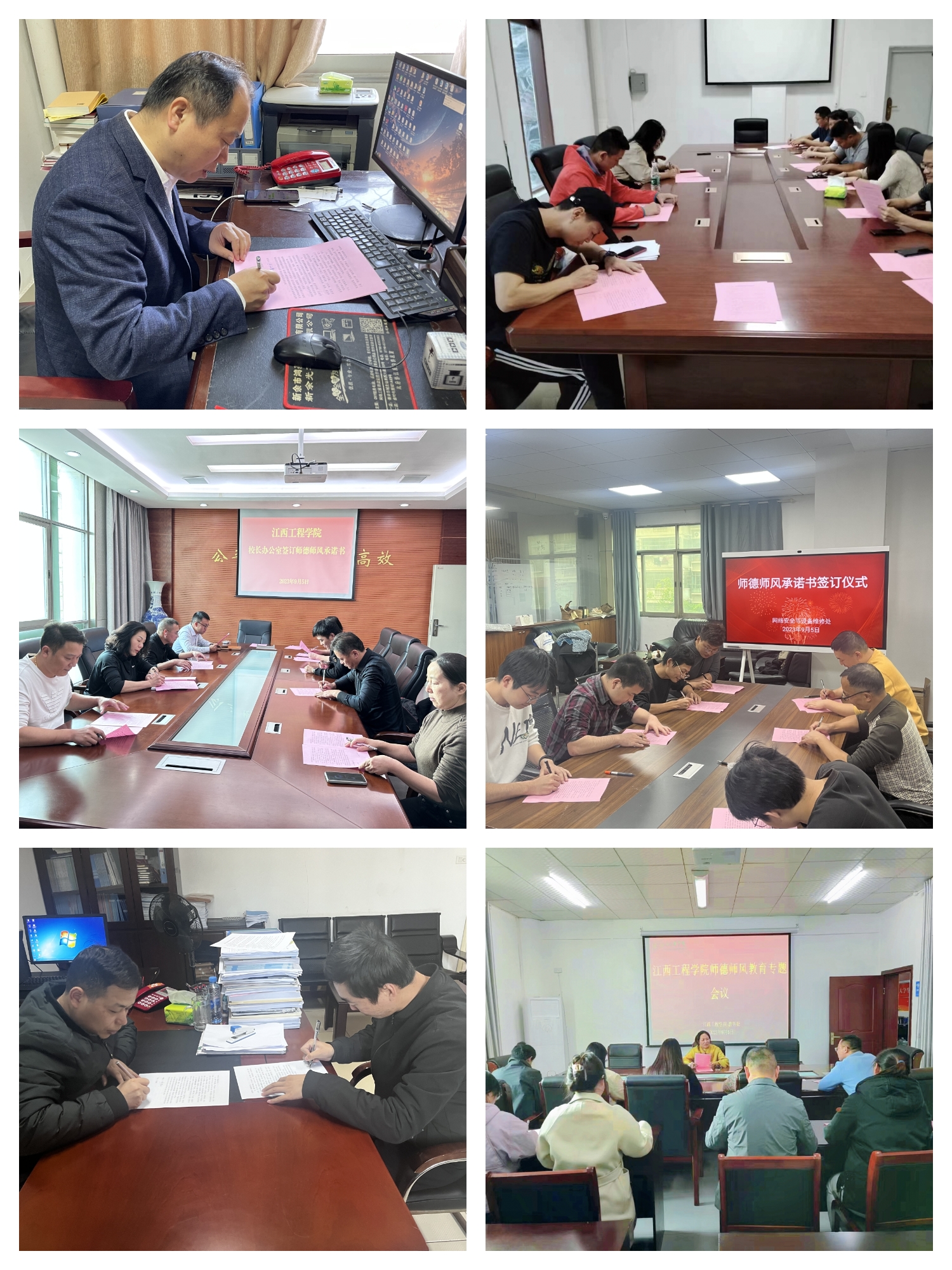 各单位教师认真阅读并学习了师德师风承诺书内容,深刻理解了师德师风承诺书的精神和把握立德树人的根本任务,并对自我提出了加强政治理论学习,确立教师职业理想,强化教师职业责任,严守教师职业纪律,严格遵守《新时代高校教师职业行为十项准则》,争做“四有”好老师的要求。