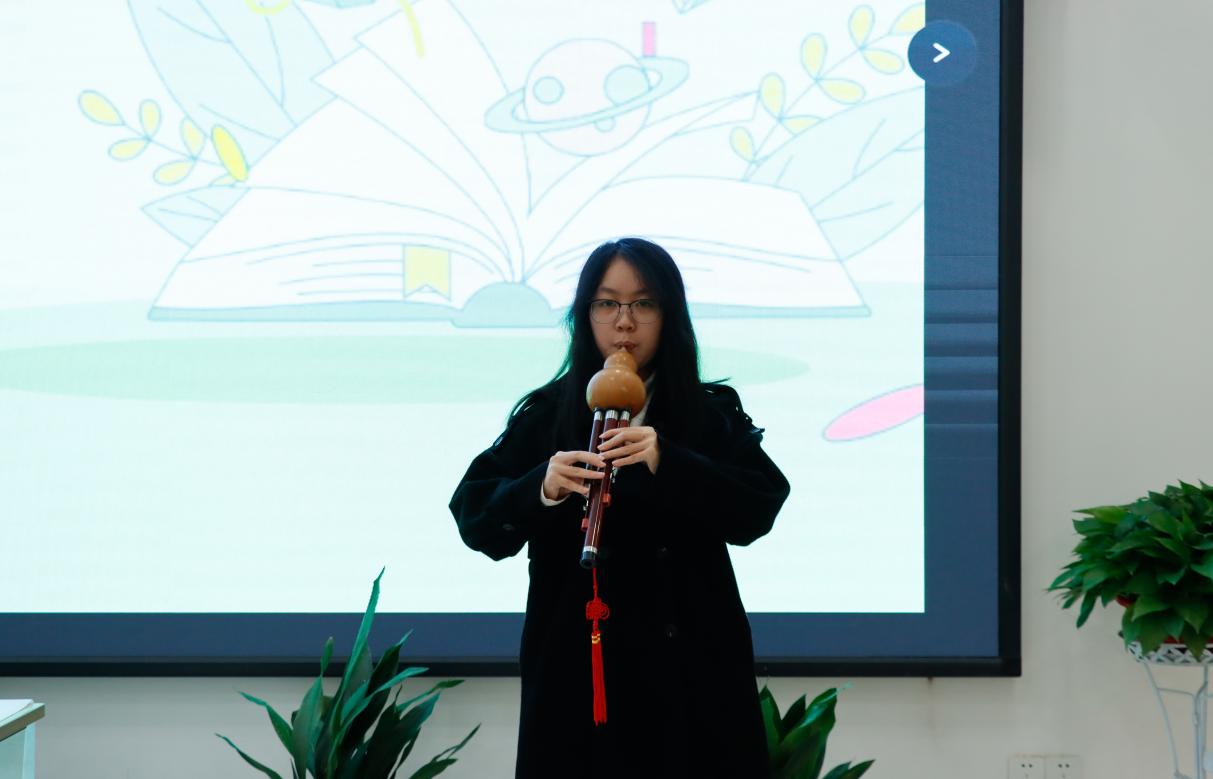 我校“十百千宣讲团”成员、中新国际音乐比赛二等奖获得者肖童以唱红歌、乐器演奏、书法展示等形式宣讲习近平总书记考察江西重要讲话精神。