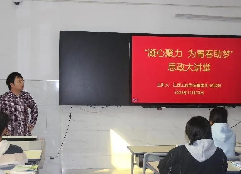 (本网讯 王娟 何凯 报道)“人生万事须自为,跬步江山即寥廓。”为全面贯彻落实党的二十大精神,用习近平新时代中国特色社会主义思想凝心铸魂,不断增强青年学生身上的政治责任感、历史使命感、现实紧迫感,培养学生肩负时代赋予的使命,2023年11月20日上午,杨显阳董事长深入大数据与计算机学院开展“凝心聚力 为青春助梦”思政大讲堂,激励学生以饱满的精神、昂扬的姿态投入大学生活,以青春之我展现自信自强的风貌。