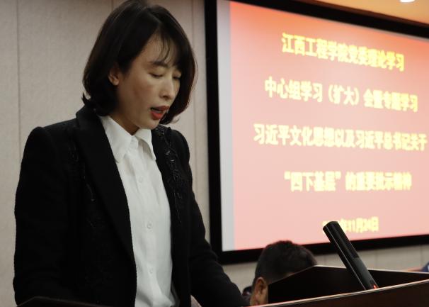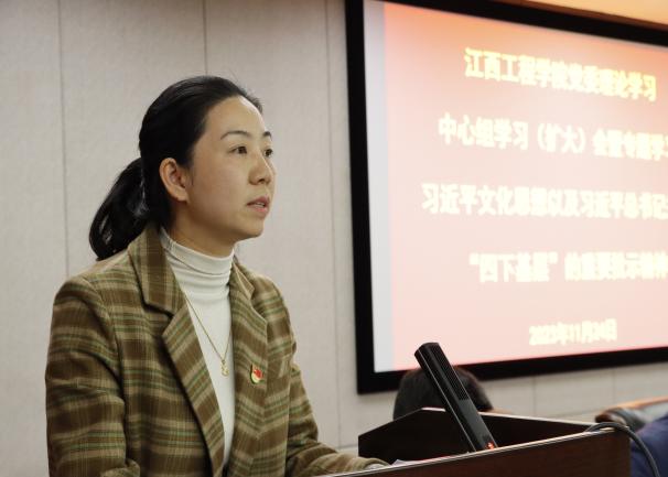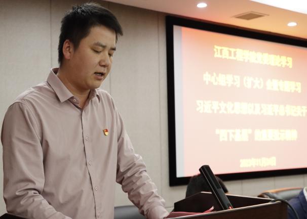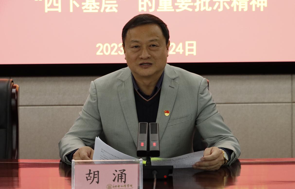 胡涌书记在总结讲话中提出了三点要求,一是深刻认识习近平文化思想的主要内容,全校上下要把做好宣传思想文化工作作为重大政治责任扛在肩上,坚持深入学习领会习近平文化思想,聚焦“走在前、勇争先、善作为”的目标要求,围绕学校各项工作特色、亮点,讲好江工故事,更好担负起新的文化使命,为推进学校内涵式高质量发展贡献力量。二是要在四个方面下功夫,在坚守意识形态阵地上下功夫、在社会主义核心价值观引领校园文化建设上下功夫、在传承和弘扬中华优秀传统文化上下功夫、在讲好江工故事,传播江工好声音上下功夫,推动学习贯彻习近平文化思想落实落细。三是践行“四下基层”助推学校高质量发展,要聚焦“四下基层”精神实质,密切联系群众;要聚焦“四下基层”好经验好做法,多深入一线倾听广大师生的意见建议,真正把广大师生反映的问题发现出来、意见反映上来、创造的经验总结出来;要聚焦“四下基层”走深走实,深化“党建+”理念,大力挖掘天工文化的积极元素,深化培植“立德树人、铸魂育匠”党建特色品牌;要以主题教育为契机,针对排查出的问题列出清单,销号管理,补齐短板弱项,堵塞安全漏洞,全力维护师生生命安全和身心健康;要完善开放办学体系,统筹做好“引进来”和“走出去”两篇大文章,大力推进校际、校所、校企、校地深度合作;要认真做好毕业生实习就业工作,实实在在办好惠民利民实事。