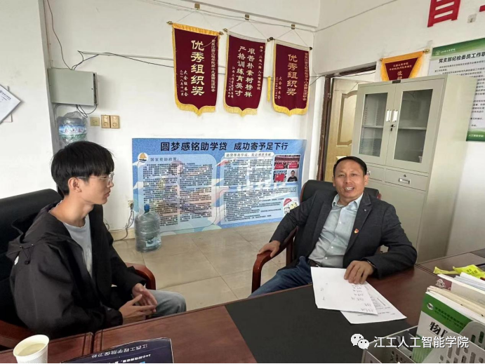 刘光斌同学在这次谈心谈话活动中感触很深,他表示:会努力克服困难,加强体育锻炼,夯实专业基础,同时非常感谢学校对自己的关心和帮助,必将牢记嘱托、心怀感恩、努力学习,以优异的成绩来回报家庭、学校和社会。