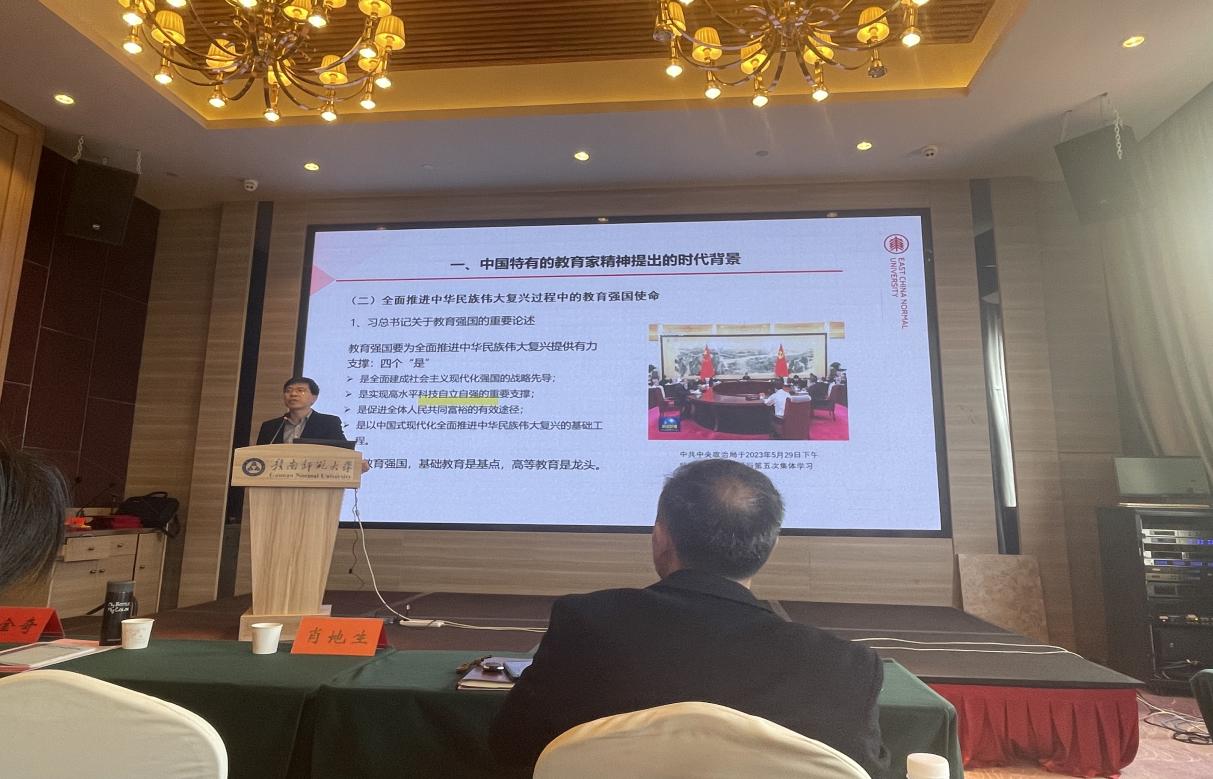 上午,我校一行参加了“弘扬教育家精神,培养时代新人”主论坛。华东师范大学党委教师工作部副部长、哲学博士方金奇,华中科技大学教育科学学院院长助理、教授、博士生导师刘长海,《高校辅导员学刊》常务副主编、博士生导师朱平,《江苏高教》编辑部副主编肖地生围绕教育家精神的深刻内涵以及实践路径等分别作主旨报告。