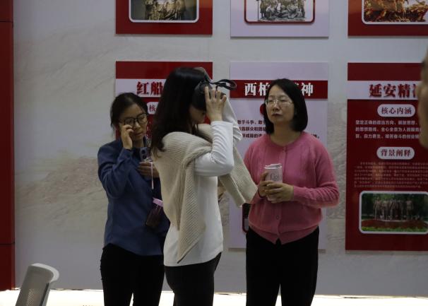在思政VR体验室,冯赟表示,学校加快建造社区思政VR实践中心是通过基于VR技术的思政课实践教学新模式,让学生可以在浓缩的时空情境之中,很好地领悟实践资源的精髓及其系统教育元素,从而增加了参与思政课实践教学活动的兴趣,提升了实践教学的活动融入度。让学生在“视听触”虚拟仿真环境中体验了中国共产党的百年辉煌历程。