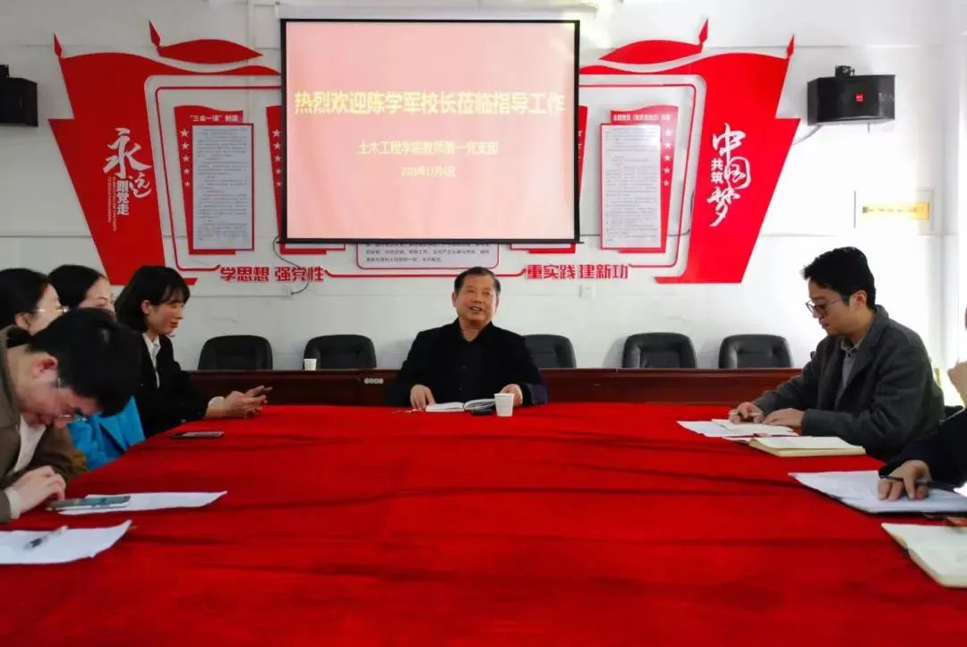 为进一步夯实校党委履行抓基层党建工作主体责任、密切党员领导干部与基层党组织和党员、群众的联系,增强党内政治生活的政治性、时代性、原则性、战斗性,进一步促进学院党建工作水平的整体提升,2023年12月6日,校长陈学军深入土木工程学院教师第一党支部开展调研工作并举行工作调研会议。
