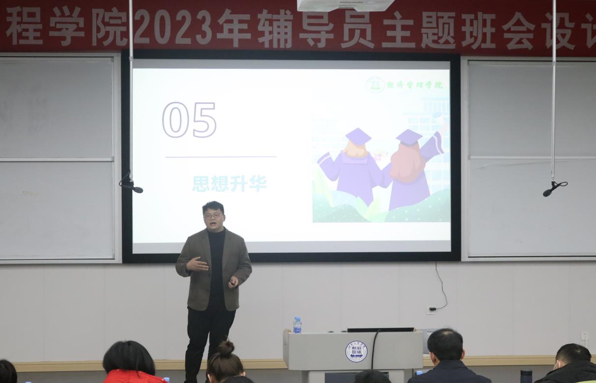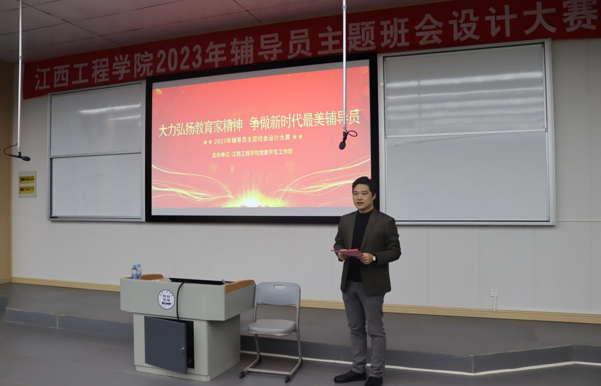 (本网讯 李小力 报道)为深入学习贯彻习近平新时代中国特色社会主义思想主题教育和习近平总书记考察江西重要讲话精神,落实《普通高等学校辅导员队伍建设规定》(教育部令第43号),促进辅导员队伍专业化职业化发展,进一步落实立德树人根本任务,提升我校辅导员的思想政治工作能力和育人水平。我校于12月13日下午在仙女湖校区学术报告厅举行“大力弘扬教育家精神,争做新时代最美辅导员”2023年辅导员主题班会设计大赛。