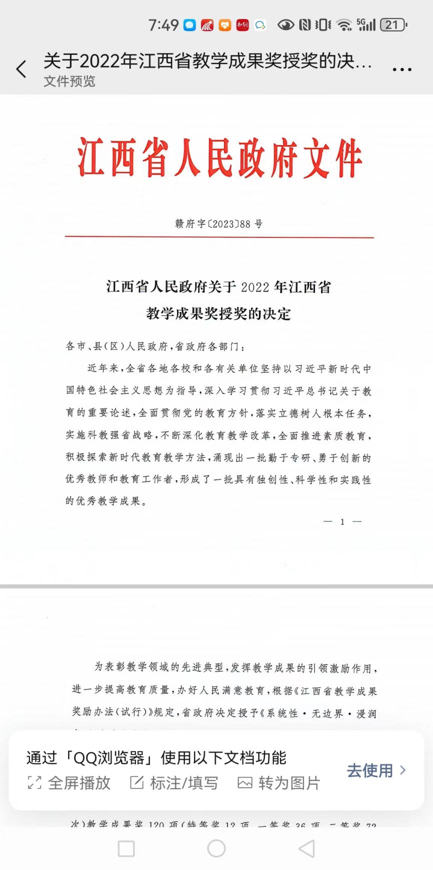 12月28日,江西省人民政府印发《关于2022年江西省教学成果奖授奖的决定》,公布了2022年江西省教学成果奖项目名单。由我校智能制造与能源工程学院史洪松团队申报的“机械专业‘四位一体’创新人才培养模式的探索与实践”项目荣获高等教育类教学成果二等奖,是全省四所民办本科院校获奖的高校之一。据悉,这是首次由省人民政府表彰的教学成果奖励项目,每四年评审一次,奖项含金量高,社会影响力大。
