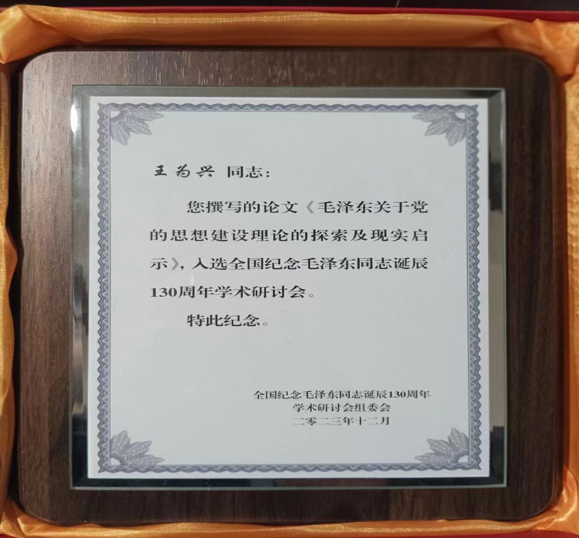 为纪念毛泽东同志诞辰130周年,2023年12月26日-12月28日由中央宣传部、中央党校(国家行政学院)、中央党史和文献研究院、教育部、中国社会科学院和中央军委政治工作部在京联合举办“全国纪念毛泽东同志诞辰130周年学术研讨会”。我校马克思主义学院教师王为兴应邀参加此次国家级学术研讨会。