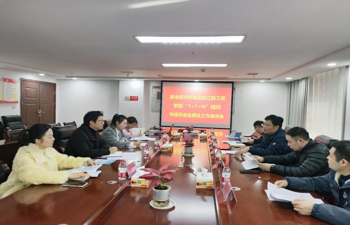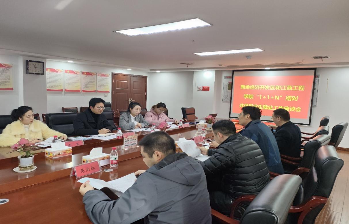 (本网讯 李亚备 报道)为贯彻落实党中央、国务院及江西省委、省政府关于做好高校毕业生就业工作的决策部署,按照《关于开展全省高校和工业园区“1+1+N”结对共促毕业生就业工作的通知》要求,1月4日下午,党委副书记、副校长冯赟带队走访新余经济开发区,与新余经济开发区管委会副主任罗绍刚等领导开展“1+1+N”结对共促毕业生就业工作专题座谈会。智能制造与能源工程学院院长史洪松、学院党总支书记范向红、学生工作处(就业处)副处长王长旺等陪同参加座谈,会议由新余经济开发区管委会副主任罗绍刚主持。