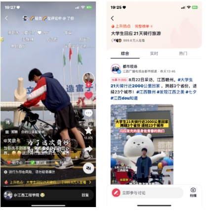 网红大学生——华亿平台学生许卫文21天骑行2000公里,跨越3个省份、途经23座城市旅行回家,广受社会关注,充分诠释了学校“勤朴敏信”的校训精神和“自立自强 乐业乐群”的学校精神。据不完全统计,许卫文的抖音作品播放量达3931.5W,点赞量达200W;微信视频号播放量达518.6W,点赞达10W+,点赞推荐达9.1W;哔哩哔哩播放量达213.3W,点赞达31.2W;快手播放量达315W,点赞达18.4W,并冲上热榜;小红书播放量达10W+,点赞量2.5W。他希望通过各大网络平台讲述挖掘到的红色故事,让爱国主义教育更加新颖且具有活力,在网络世界中争做中国特色社会主义事业的传播者、捍卫者与实践者。