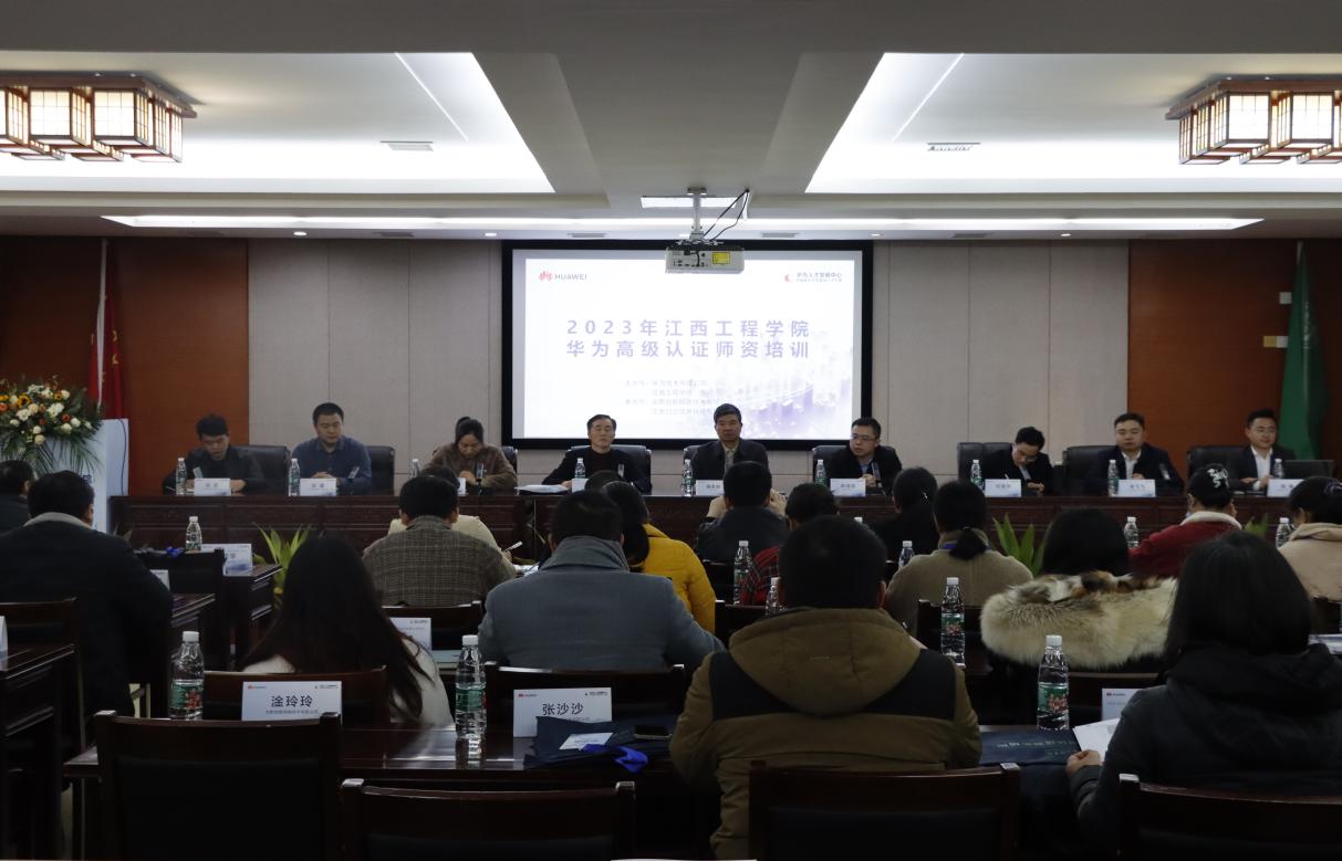 为加快学校内涵建设,提升教师业务能力,协助在校教师获得ICT前沿技术,培养ICT工程实践能力,提升教学质量水平,近日,我校在天工校区行政楼三楼举行华为高级认证师资培训开班仪式。学校创始人、董事杨名权,副校长沈良,党委委员、副校长刘德华,华为江西产业发展与生态部部长肖诗浏,江西幻云信息科技有限公司总经理荣飞飞,华为大数据HCIE专家讲师刘文,华为人工智能HCIE专家讲师吴健,华为江西授权培训中心-江西幻云信息科技有限公司副总监陈康出席本次开班仪式,会议由刘德华主持。36名培训教师参加此次开班仪式。