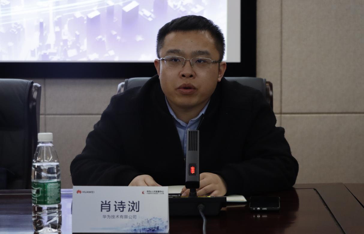 华为江西产业发展与生态部部长肖诗浏介绍了华为公司的历史,他表示,华为依托于自身ICT领域的技术积累,构建了面向全球的ICT职业认证体系,和面向高校的“华为ICT学院”校企合作人才培养项目。以ICT产业长期积累的成功实践为基础,持续投入,联合合作伙伴的各类资源,构筑数字人才生态良性发展的使能平台,共建、共享开放繁荣的产业链人才合作生态,让数字世界汇集更多的高校师生,让更多的人能享受平等优质教育、增强数字技能,为产业繁荣发展注入新鲜血液。并预祝本次培训圆满成功!