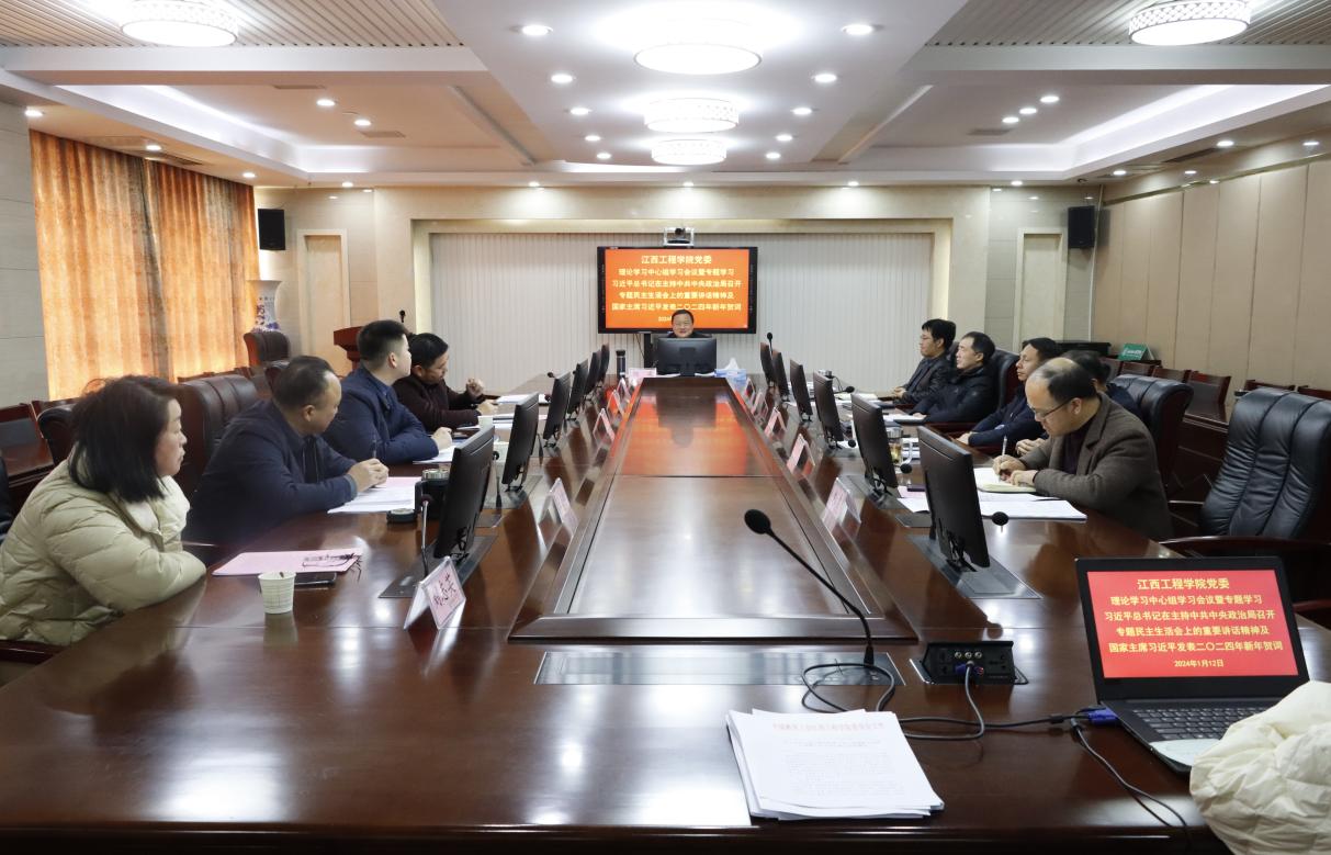 (本网讯 何凯 报道)1月12日,学校在天工校区行政楼七楼会议室召开2024年第1次党委理论学习中心组专题学习会议。深入学习习近平总书记在主持中共中央政治局召开专题民主生活会上的重要讲话精神及国家主席习近平发表二〇二四年新年贺词。校党委书记、督导专员胡涌主持会议并讲话,在家党政领导班子成员出席会议。党群部门负责人列席会议。