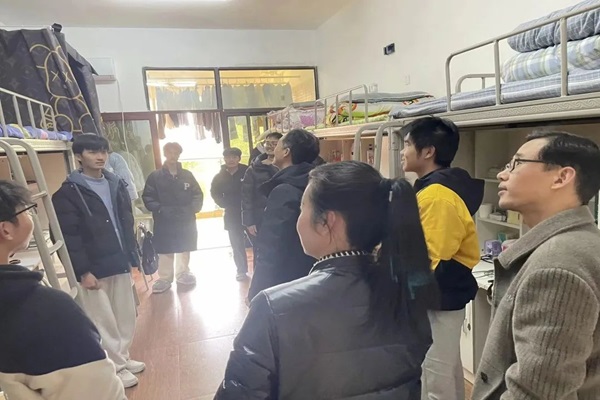 “你们都是哪里的人啊?”“平时有什么兴趣爱好吗?”每到一间宿舍,沈良都亲切与和学生面对面交流,细致了解了学生宿舍的设施、学生生活、学生学习等方面的情况。每到一间宿舍,他都查看室内设施安全情况,检查同学们的电源插排、充电器等是否符合安全标准。