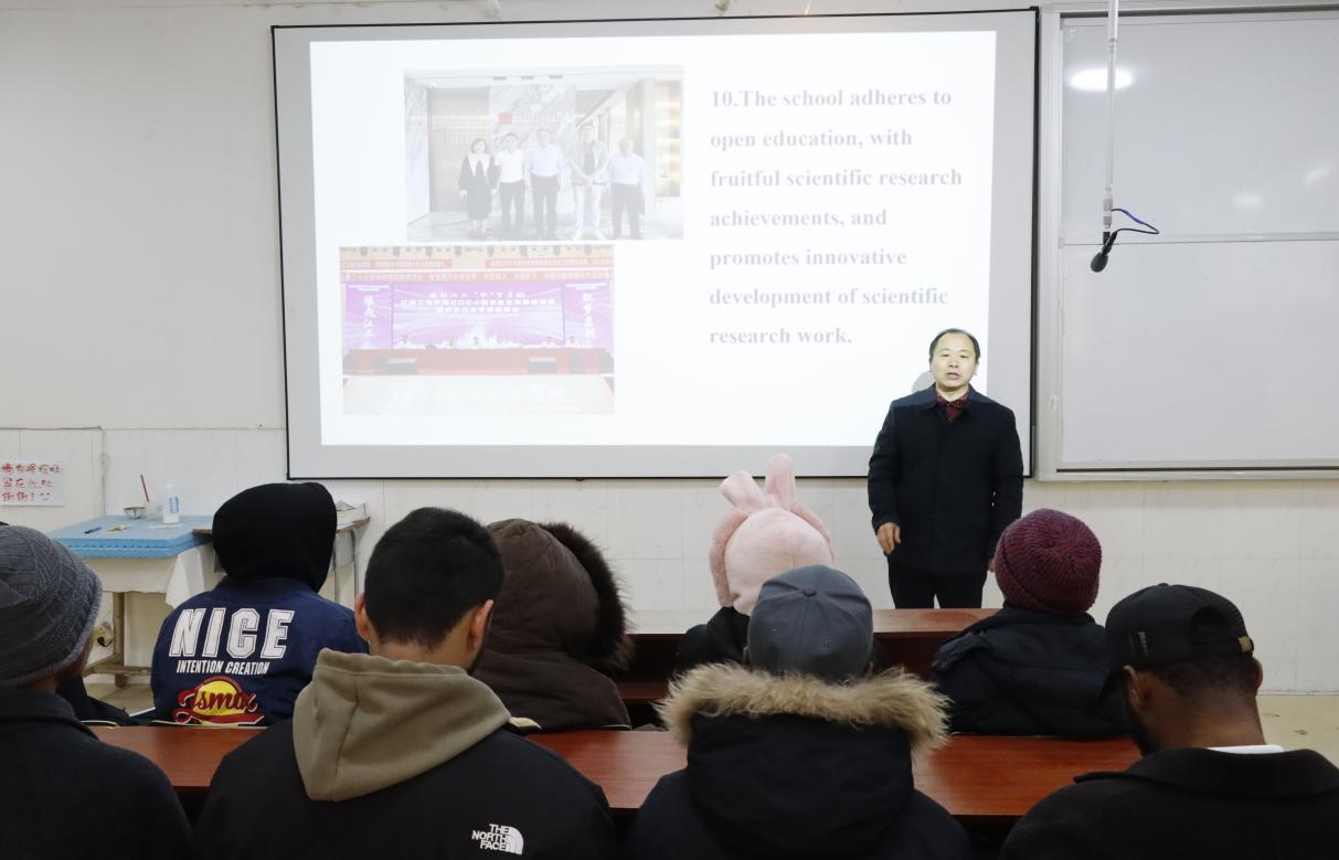 目前,学校共有来自巴基斯坦、埃塞俄比亚、南苏丹、尼日利亚、阿尔及利亚、刚果共和国、喀麦隆等7个国家的21名留学生。学校把中华优秀传统文化中具有当代价值、世界意义的文化展示出来,增强留学生对中国故事的“参与度”,以引导留学生全面感知中华优秀传统文化,提升他们讲述中国故事、传播中国声音的能力,助力留学生在促进各国人民民心相通方面发挥作用。