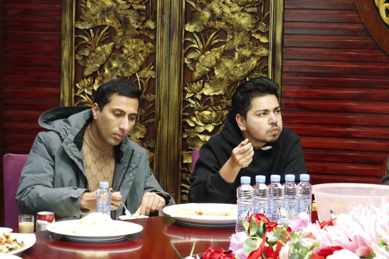 来自巴基斯坦的留学生明哲说,华亿平台的领导像父母一样关心我们,学校的年夜饭真的太丰盛了,饭菜很好吃,虽然现在是寒假,但是为了更好地了解中国文化,所以决定留在中国,与老师同学一起过个难忘的春节。
