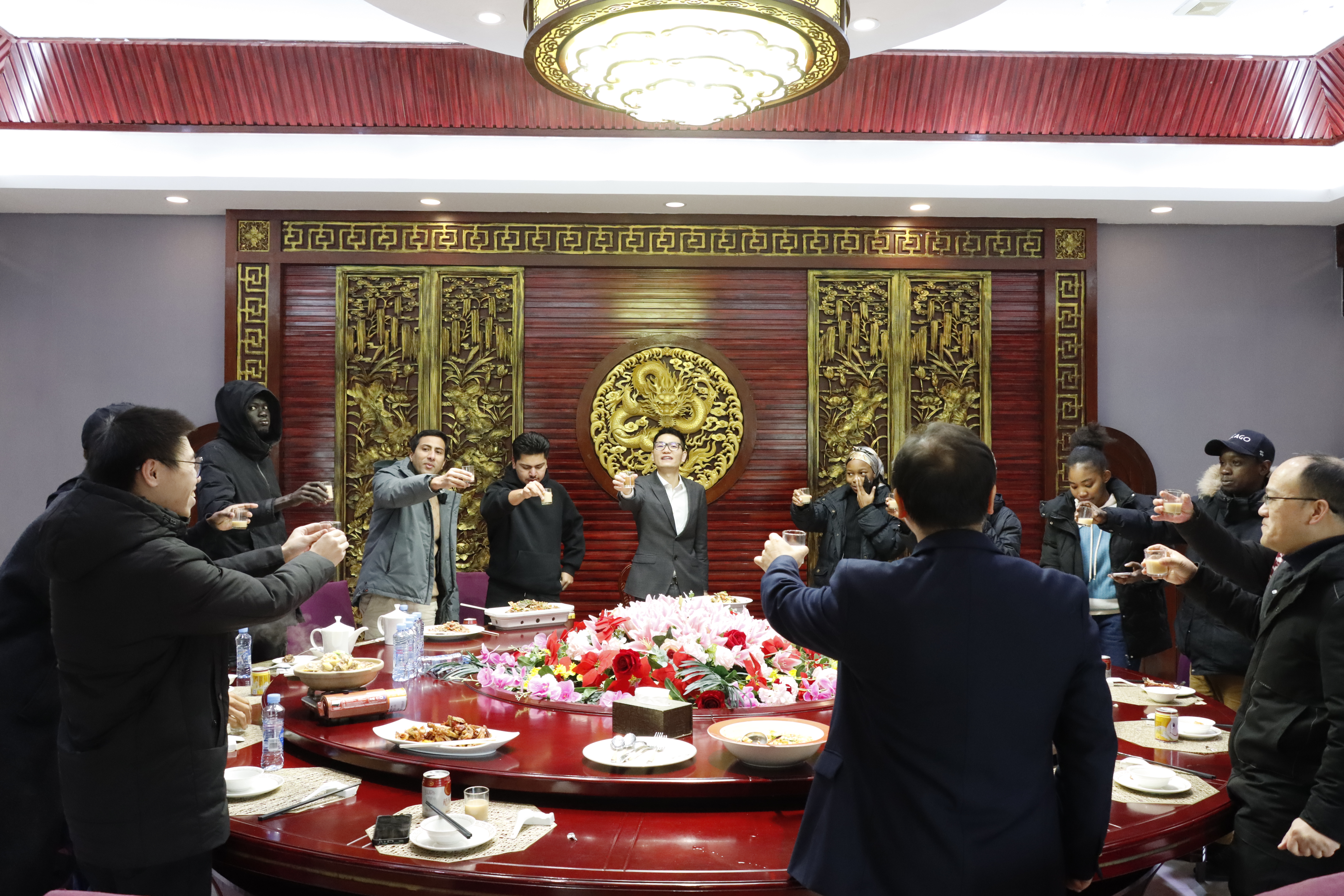 华亿平台在食堂餐厅为在校留学生准备了一场“特殊”的年夜饭,提前体验中国年,乐俊杰与在校留学生共聚一堂,以吃年夜饭这种最有年味的方式和留学生们一同喜迎新春佳节的到来。同时也让他们充分感受到中国传统佳节的气氛。“新年快乐!龙年吉祥!”留学生们聚餐时激动地说起了带中国味儿的祝福。