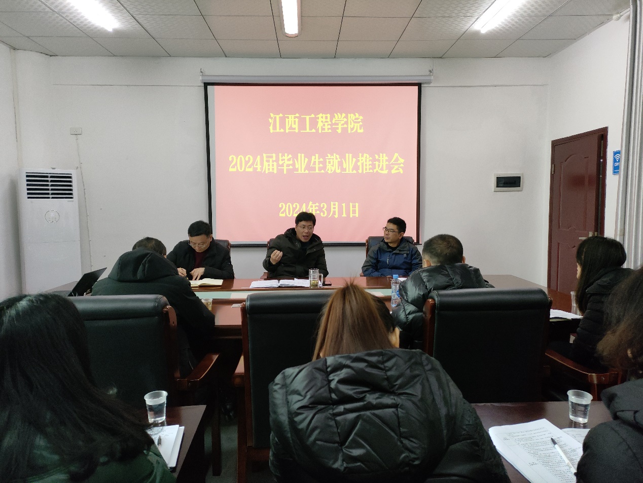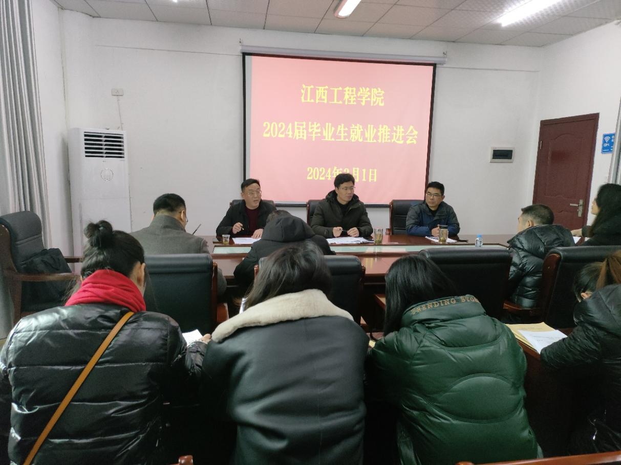 会议传达了省教育厅《关于开展2024届全省高校毕业生就业育人系列活动的通知》(赣教高字〔2024〕10号)和《江西省教育厅就业工作提示》(2024年第2号)文件精神及有关工作提示要求,通报了各二级学院2024届毕业生就业去向落实率,并对持续推进校园招聘、访企拓岗、重点帮扶、就业育人、就业核查等工作作出具体部署。