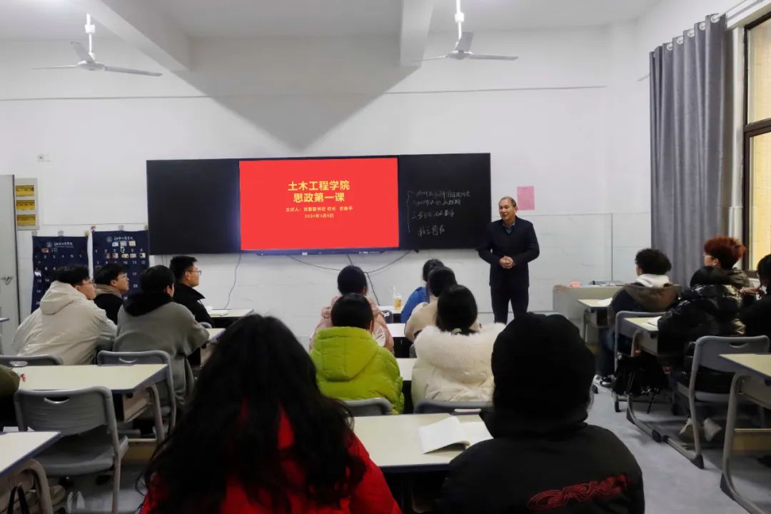 3月6日上午,校长史焕平深入土木工程学院以《龙行龘龘启新程 热辣滚烫谱新篇》为主题,为学院师生讲授了“思政第一课”。史焕平校长以“龙”为引线,指出在中国传统文化中,龙是中华民族的图腾与独特文化标识,寓意着威武刚健,象征着智慧吉祥。希望师生在甲辰龙年,肩负作为龙的传人的历史使命,抖擞着生龙活虎的精神,鼓舞着龙腾虎跃的气势,迎接热辣滚烫的新学期。