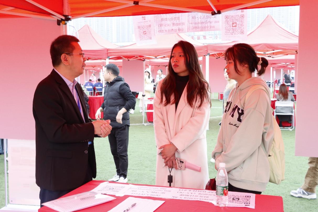 开幕式结束后,校领导现场走访用人单位,详细了解招聘需求、薪资待遇、简历投递人数等,与毕业生互动交流,现场进行就业指导和答疑解惑,鼓励同学们紧握机遇,早日找到心仪工作,在工作岗位上发光发热。