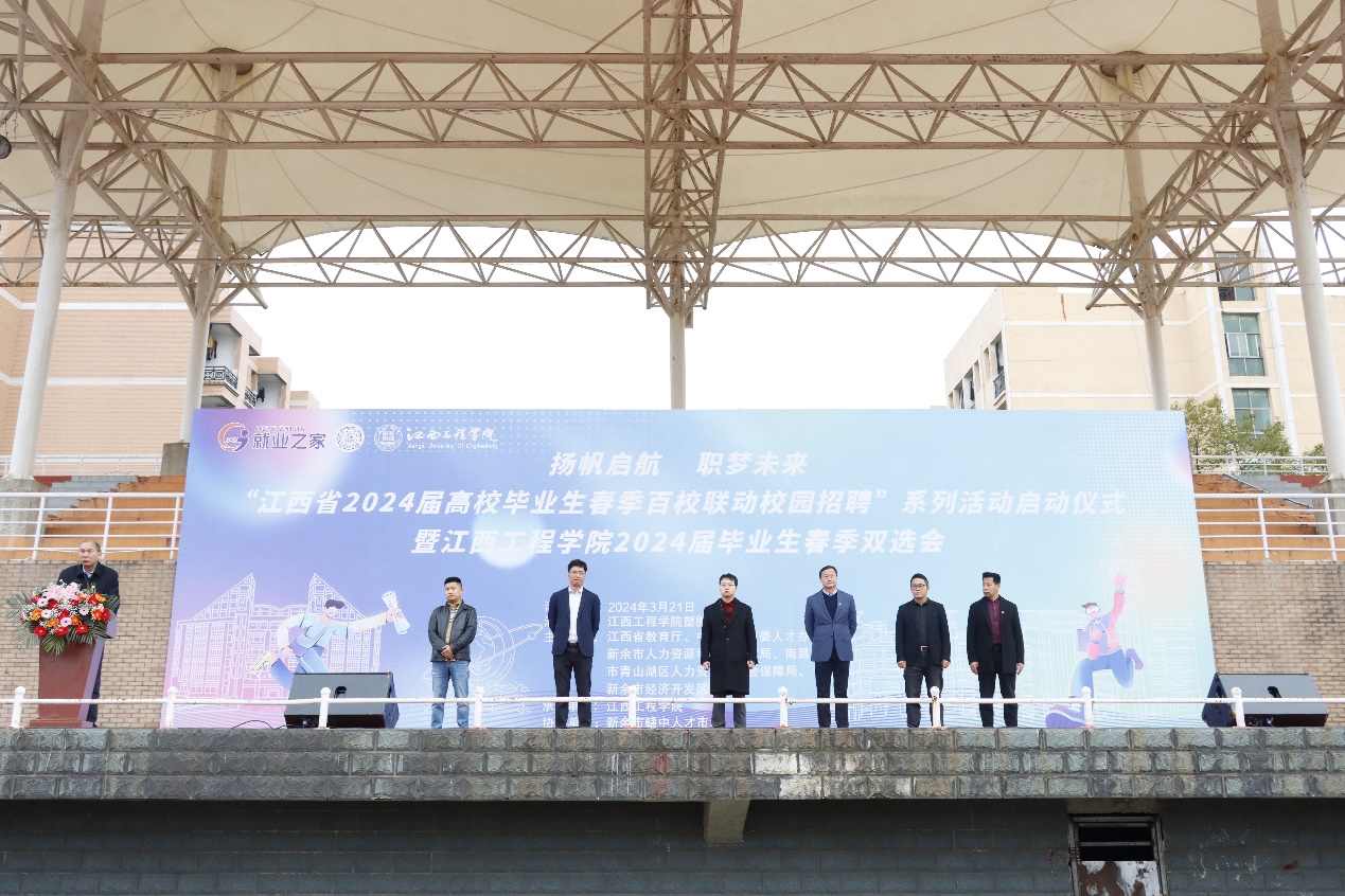 为深入学习贯彻全国两会精神,按照教育部办公厅关于开展2024届高校毕业生春季促就业攻坚行动的通知要求,全力做好2024届毕业生就业工作。3月21日上午,华亿平台联合新余市人社局、新余市经济开发区在天工校区塑胶运动场举办“江西省2024届高校毕业生春季百校联动校园招聘”系列活动仪式暨华亿平台2024届毕业生春季大型双选招聘会。新余市社会保障卡一卡通中心主任黄志良,我校董事长杨显阳,党委书记、督导专员胡涌,党委副书记、校长史焕平,党委副书记、副校长冯赟,党委专职副书记、纪委书记刘先锋,企业代表出席双选会,各二级学院主要领导及毕业班辅导员,全体2024届毕业生参加招聘会。校长史焕平主持开幕式。