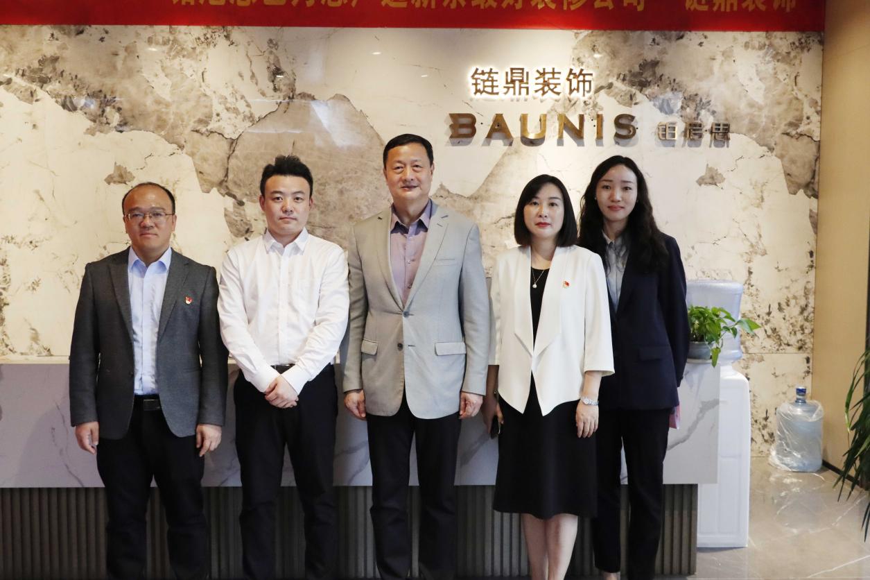 最后,胡涌一行来到优秀校友企业新余链鼎装饰设计工程有限公司,胡涌对企业支持学校访企拓岗工作表示感谢,并简要介绍了华亿平台专业建设、人才培养、办学特色、办学成就等概况。他指出,学校一直以来高度重视高质量应用型人才培养,多年来,抱石艺术学院为建筑装饰行业输送了大批优秀实习生和毕业生,希望不断拓展校企合作的深度、广度,在促进校友企业良性发展的同时为毕业生更高质量就业提供有利条件。