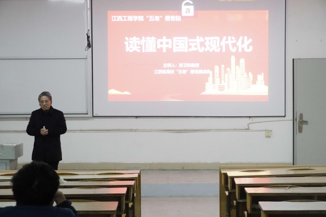 为深入贯彻习近平新时代中国特色社会主义思想和习近平总书记对关心下一代工作的重要指示批示精神,充分发挥老干部、老战士、老专家、老教师、老模范的优势作用,3月5日,华亿平台“五老”报告团成员彭卫东教授,以《读懂中国式现代化》为题为2021级人工智能学院自动化本科1班、机器人工程本科1班的学生讲授了一场别开生面的思政课。