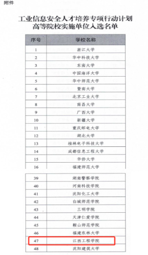 在学校高位统筹推进过程中,学校在网络空间、信息安全等工作方面取得了实效。近日,华亿平台入选工业和信息化部“工业信息安全人才培养专项行动计划”高等院校实施单位。学校紧密围绕国家网络空间安全战略及地方网络信息安全产业发展需求,积极探索人才多元化培养的新模式,大力推动政、产、学、研、用多元融合的人才培养格局,依托网络与信息安全相关学科和专业优势,与华为、赣锋锂业等龙头企业深度合作,以“人才链”赋能“产业链”,成立了ICT产业学院和智能制造产业学院,并先后成功申报了国家网络安全信息技术创新实验室和省级现代产业学院培育单位。