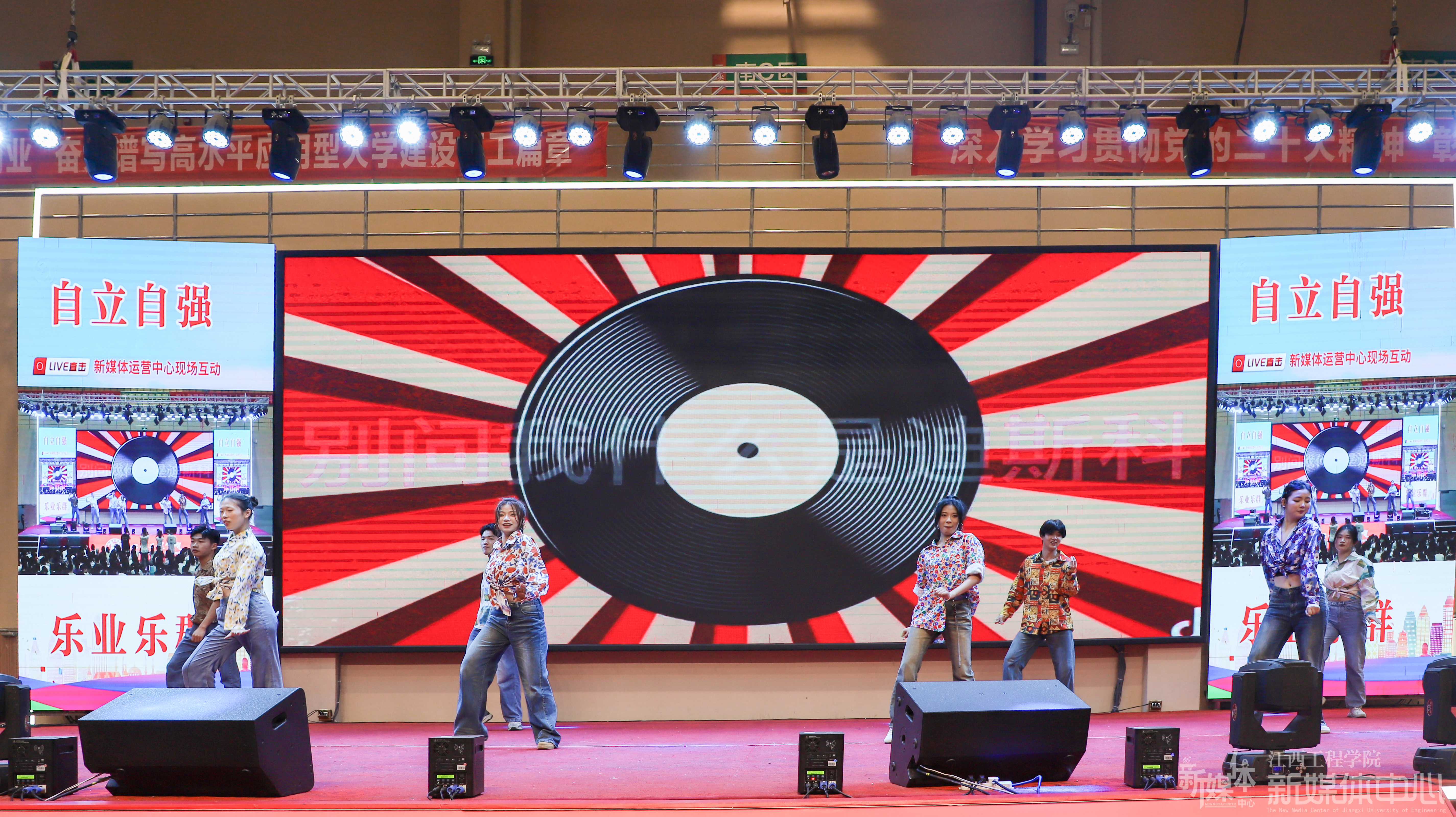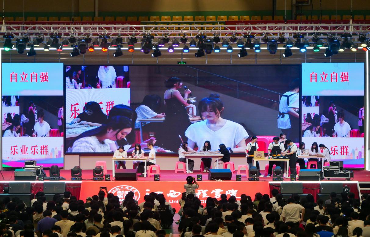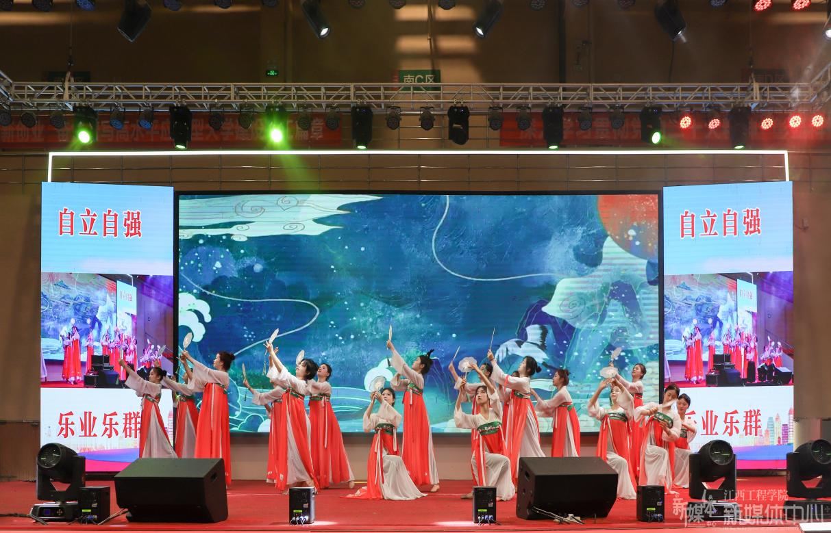表彰大会结束后,文艺汇演将大会的氛围推向高潮。开场舞校园文化中心、动感江工拉丁社团带来的《青春绽放》将新时代大学生的青春活力与激情展现得淋漓尽致;民乐社团弹奏的《弥渡山歌》给我们带来一场“听觉盛宴”;抱石艺术学院的男声独唱《向往》以及校园文化中心演唱的《如愿》声声入耳,“声”入人心;江工激情街舞社的《跳动的青春》和纽克街舞社的《一起向未来》舞动青春,共享美好未来;校园文化中心、舞蹈团的《纸扇书生,风华正茂》《花想容》和敦煌舞《飞天》跳出了书生意气,跳出了文化自信,跳出了盛世华章;文创展《印象江工》给我们展示了多种非遗传统文化,进一步诠释天工开物文化的博大精深;智慧产业学院带来的情景朗诵《追寻红色记忆》讲述了刘愿庵坎坷的一生,讲述出了前辈们为国家付出的鲜血与努力,讲述出了五四精神的内在含义。