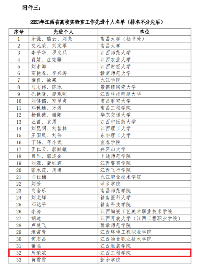 近日,我校在江西省高校实验室工作先进评选中,荣获实验室工作先进团队和先进个人称号。本次评选活动依据《关于开展2023年江西省高校实验室工作先进评选的通知》(赣实发〔2024〕2号)文件精神,经过高校推荐、秘书处审核以及常务理事会审议等程序,最终确定获奖名单。