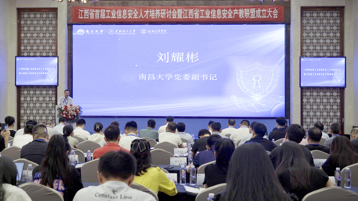 南昌大学党委副书记刘耀彬作为牵头单位代表致辞。他表示,当前技术更新换代速度加快,新型安全威胁层出不穷,人才短缺问题也日益严重,工业信息安全产教联盟的成立,将在人才培养、技术创新、产业协同等方面实现新发展,成员单位要充分发挥自身优势、加强校企合作,从而实现人才培养和技术创新的良性循环,为推动工业信息安全行业健康发展贡献力量。