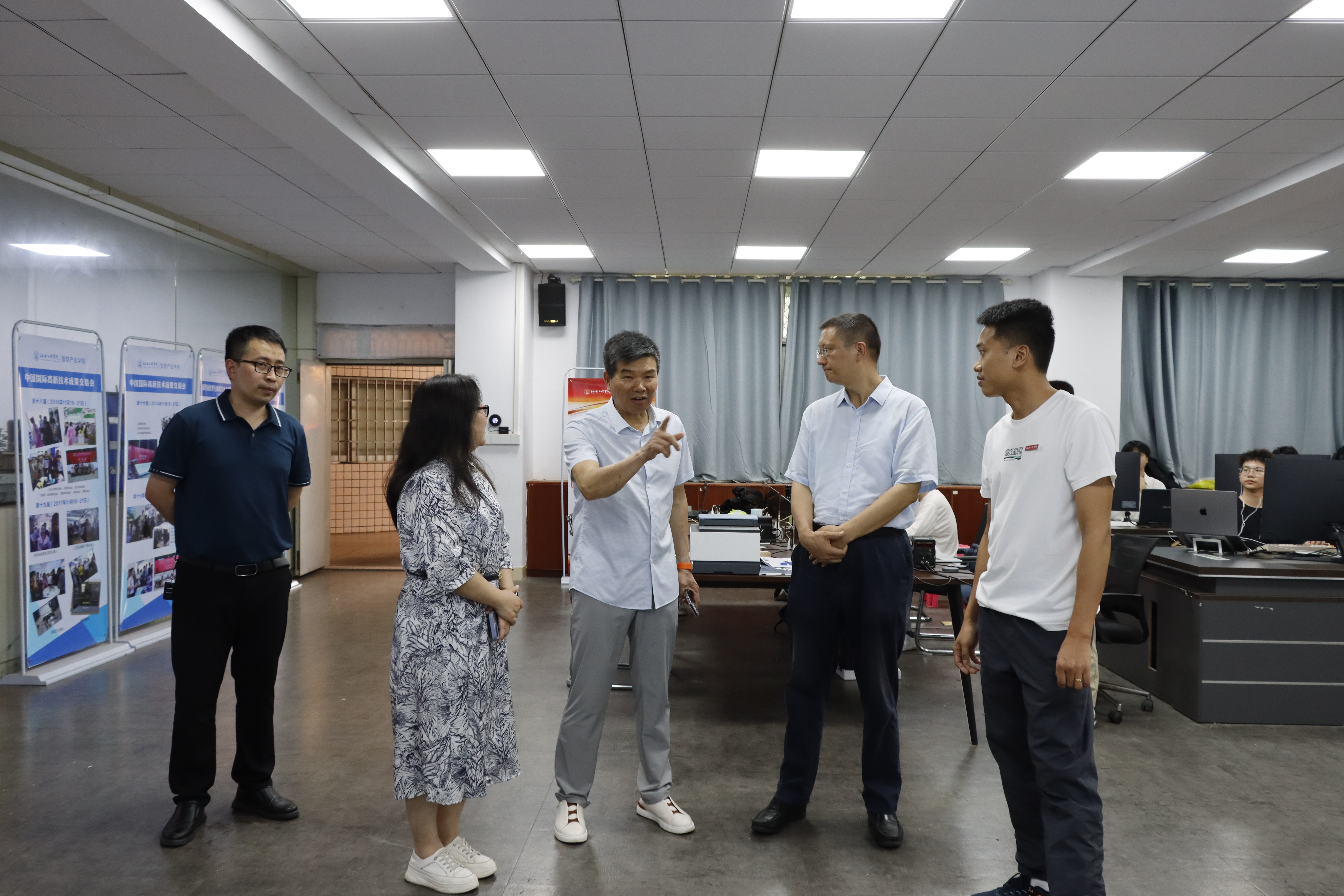 在实地考察过程中,刘耀彬教授一行参观了学校机器人研究所、图文信息中心、新文科实验实训室、仙女湖校区等地,每到一处,考察交流团边看边与杨名权交谈,双方重点在网络安全育人、创新创业应用、人才培养模式等方面进行了现场交流。
