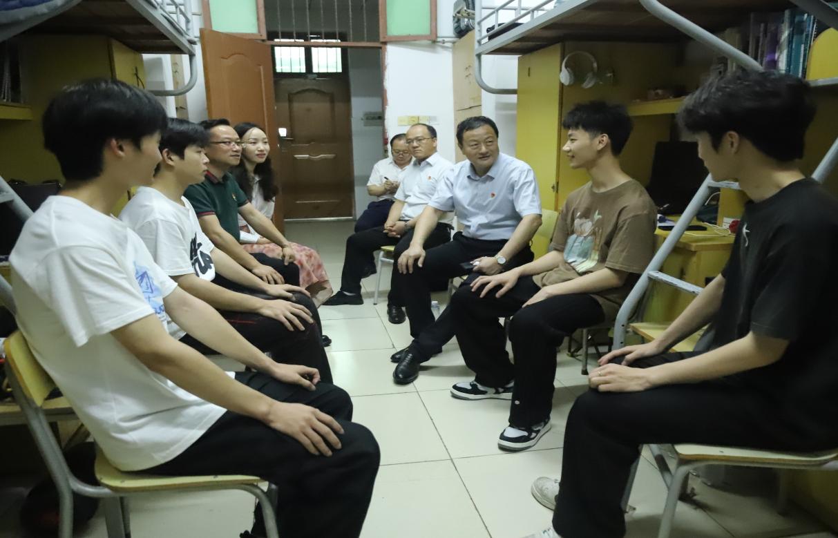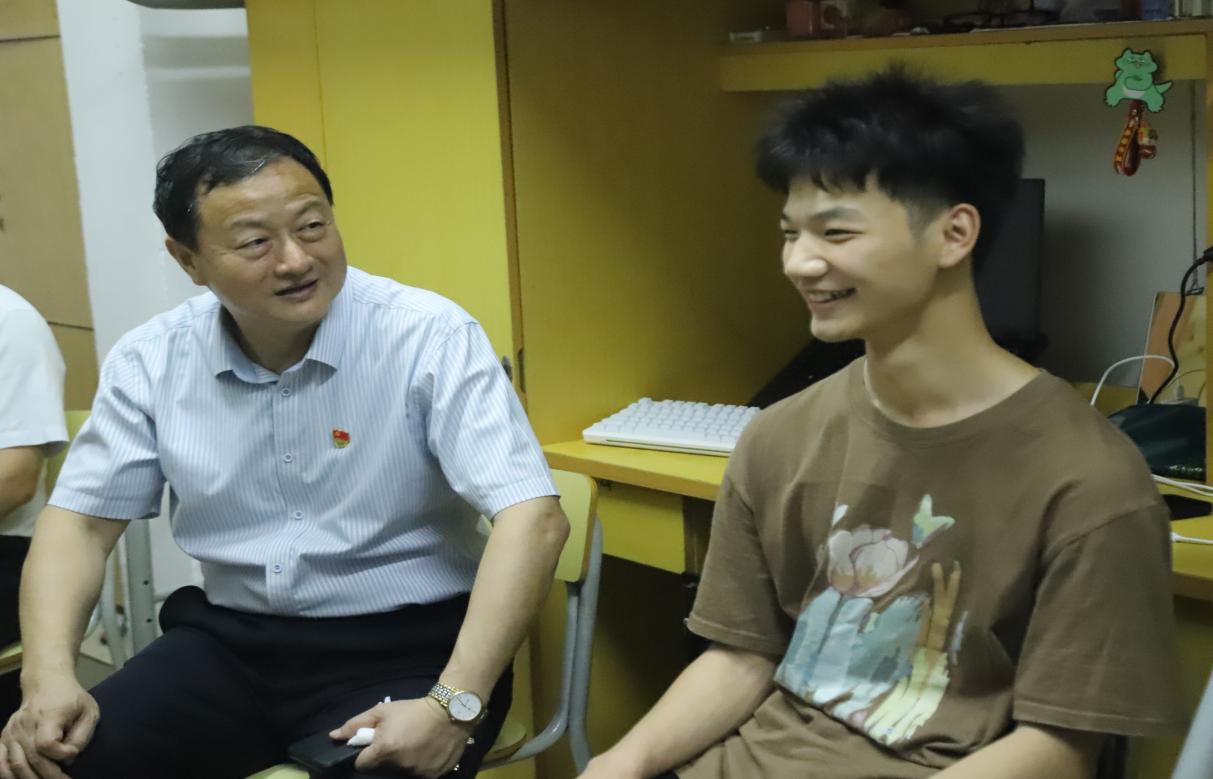 在走访过程中,胡涌书记对学生宿舍的卫生情况表示了充分的肯定。他详细询问学生学习、生活和住宿等方面情况,“你是哪里人,寝室住得还习惯吗?”“多久和父母通一次电话啊”“多久回家一次呀”……亲切关怀的问候温暖了同学们的心,也打开了同学们的“话匣子”,大家欢聚一堂,畅谈校园生活、学业规划和人生发展等话题。
