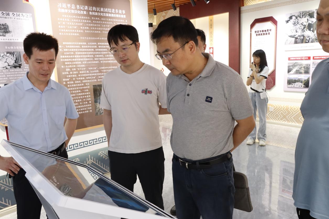 授牌仪式前罗忠一行对我校铸牢中华民族共同体意识主题展示馆进行了参观了解,对我校民族团结工作给予了肯定。大家纷纷表示,深刻感受到了中华民族悠久的历史和灿烂的文化,体会到中华民族是一个多元一体的民族大家庭,各个民族在漫长的历史长河中相互交融、共同发展,共同缔造了中华民族的辉煌历史,各民族之间的团结与奋斗成为推动中华民族不断前进的强大动力。