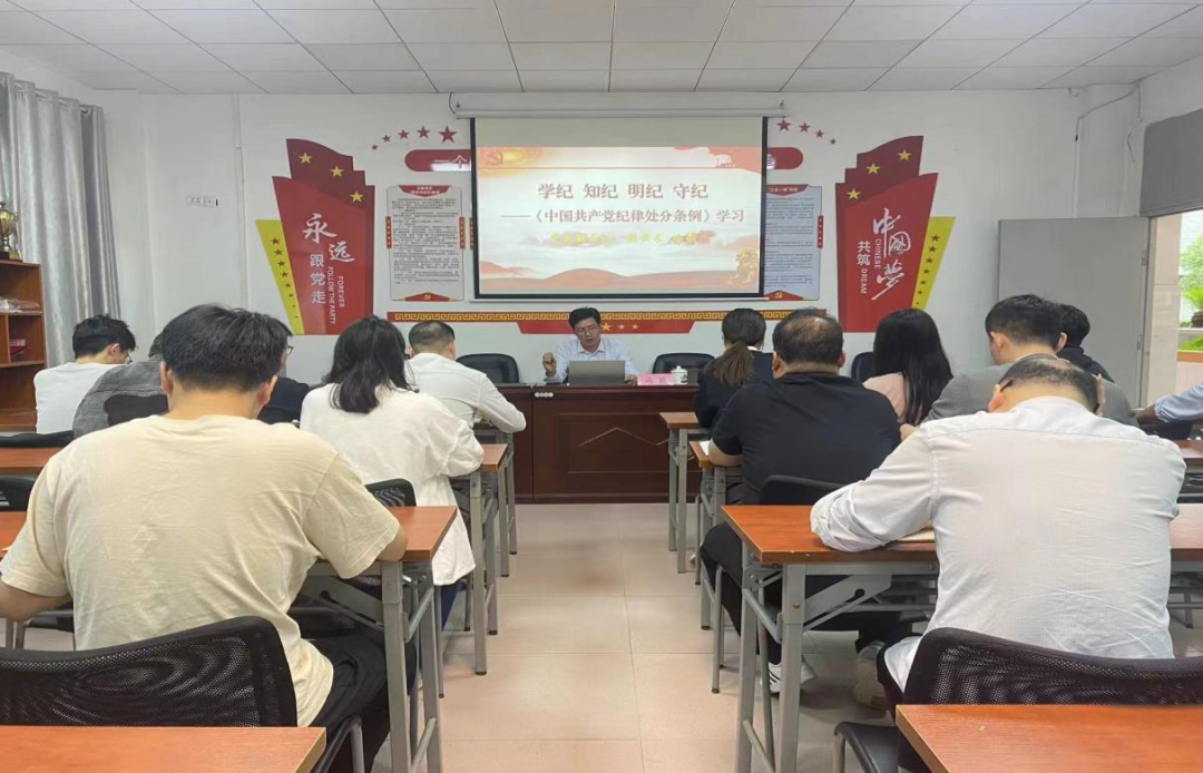 会议开始,冯赟从“学纪律、知纪律、明纪律、守纪律”四个方面入手,引导大家逐条逐规地对照解析学习了《中国共产党纪律处分条例》。冯赟指出,全体党员要坚持学习党纪法规,坚定理想信念,时刻给自己“立规矩”,严守政治纪律和政治规矩,做自我革命的“标杆”,做勇立潮头的“先锋”。要深入学习贯彻习近平总书记关于党的自我革命的重要思想,全面贯彻落实习近平总书记关于党纪学习教育的重要讲话和重要指示批示精神,深学细研新修订的《中国共产党纪律处分条例》,引导全体党员干部自觉学纪、知纪、明纪、守纪,始终做到忠诚、敢于担当。