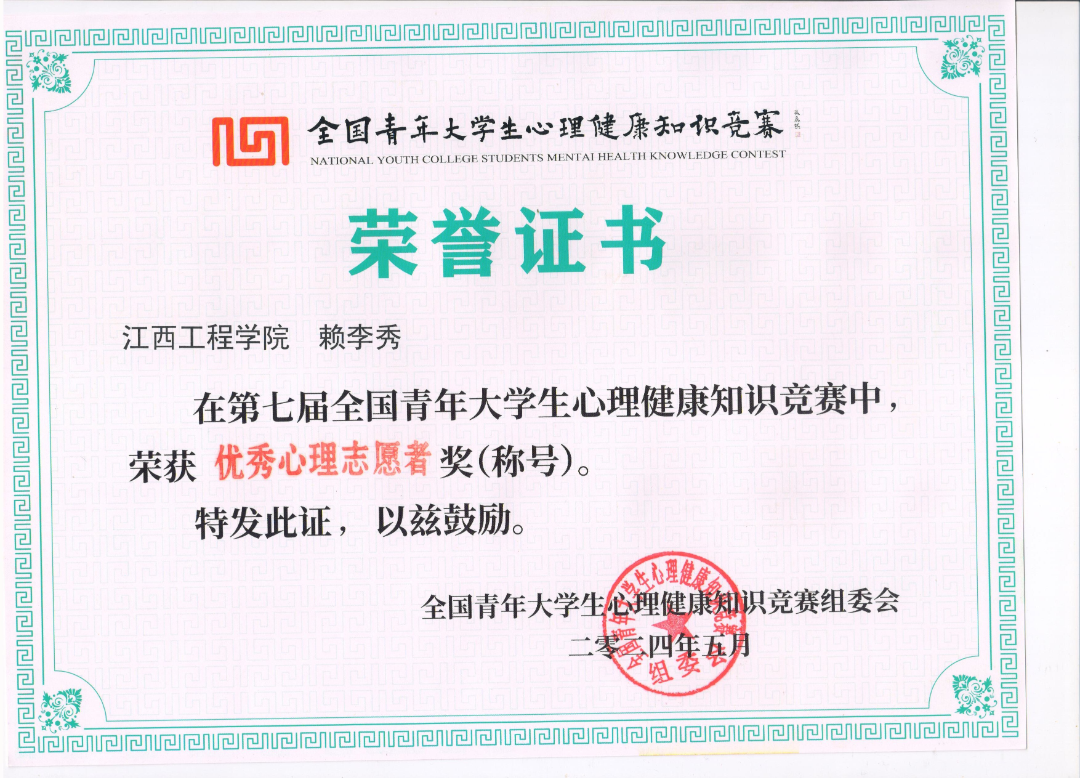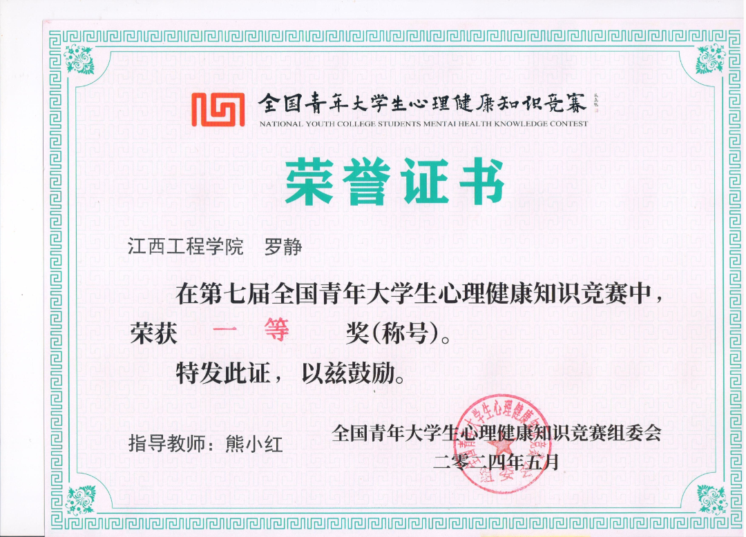 近日,由全国青年大学生心理健康知识竞赛组委会举办的第七届全国青年大学生心理健康知识竞赛于2024年5月25日圆满结束,我校学子在此次竞赛中取得佳绩。