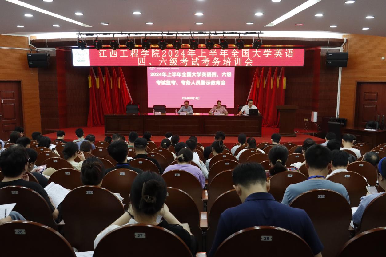 为确保我校2024年上半年全国大学英语四、六级考试工作安全平稳顺利进行。6月14日下午,我校在天工校区召开了大学英语四、六级考试考务工作培训会。校党委委员、副校长刘德华出席会议并讲话,各二级学院、相关部门负责人、考务工作人员及监考人员共140余人参加会议,会议由教务处负责人主持。
