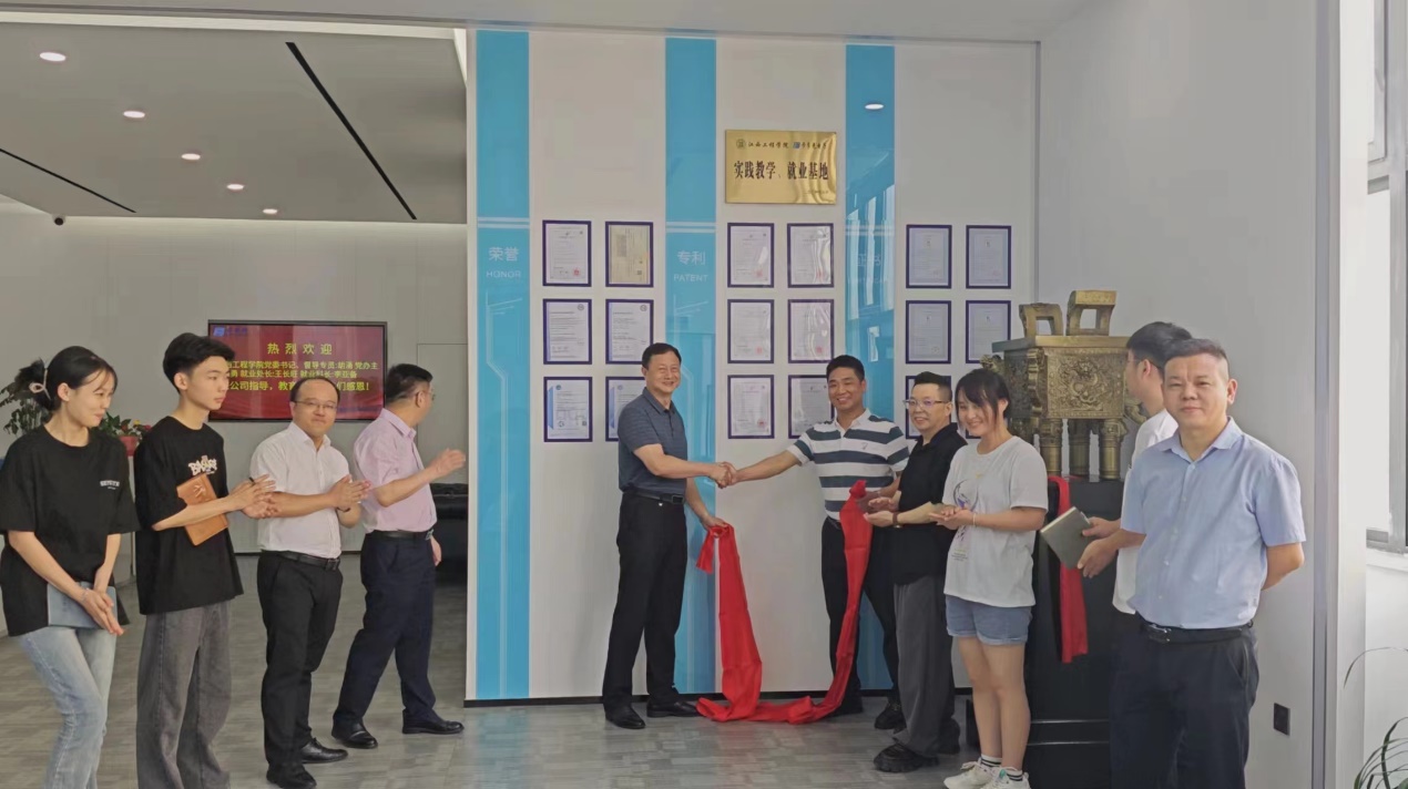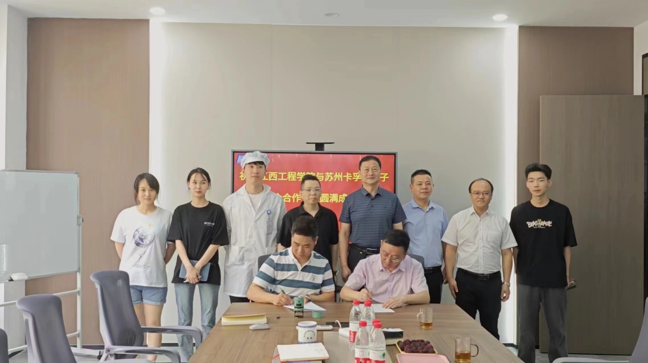 在苏州(常熟)卡孚光电子科技有限公司,就业处负责人代表学校和校友企业签订华亿平台校企合作协议书;胡涌书记与企业负责人共同为华亿平台实践教学、就业基地揭牌。