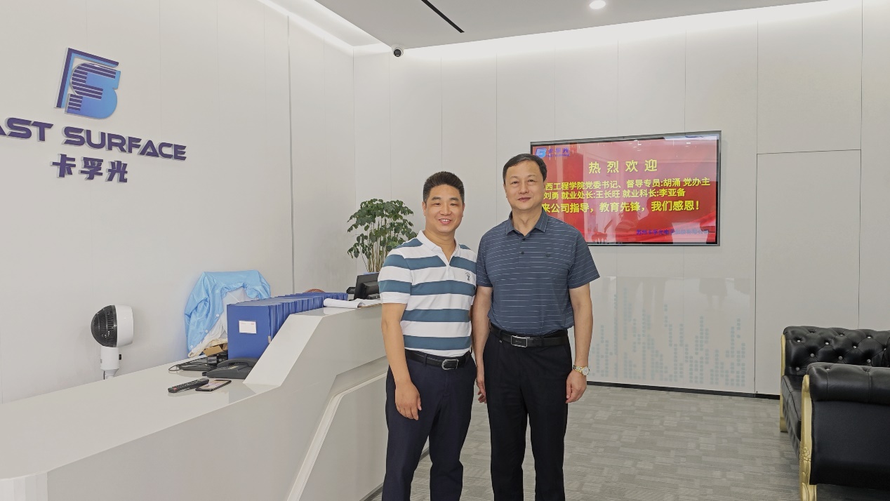 走访过程中,校友们纷纷表达了毕业后对母校的牵挂和关切之心,对胡涌书记一行来公司“探亲”表示衷心感谢,并结合自身学习、工作和生活经历、创业历程以及公司的发展等情况,表达了对母校的感恩与怀念,并对校企合作、实践基地、产教融合等多方面工作提出了宝贵意见和建议。胡涌书记代表学校对校友的关心表示感谢,期待与校友企业深化合作,也预祝校友企业蓬勃发展,欢迎校友常回母校共话佳情。