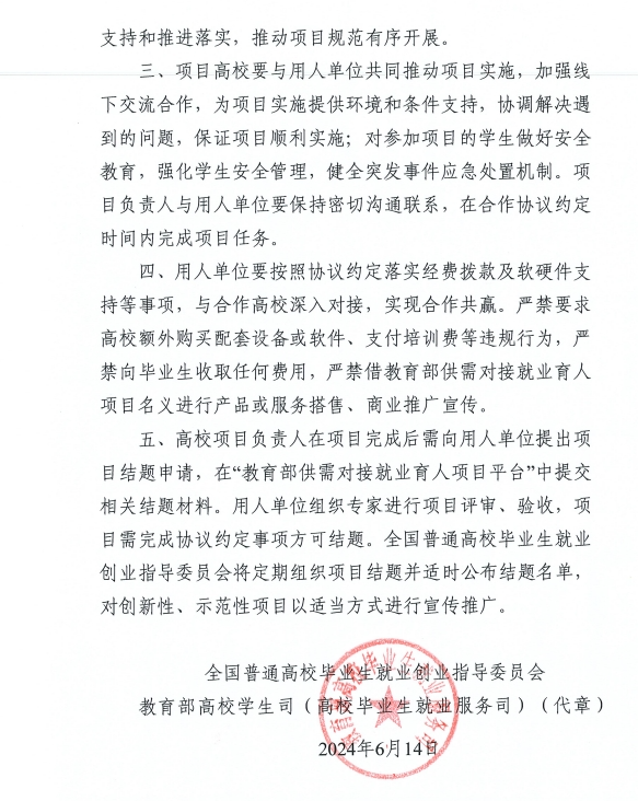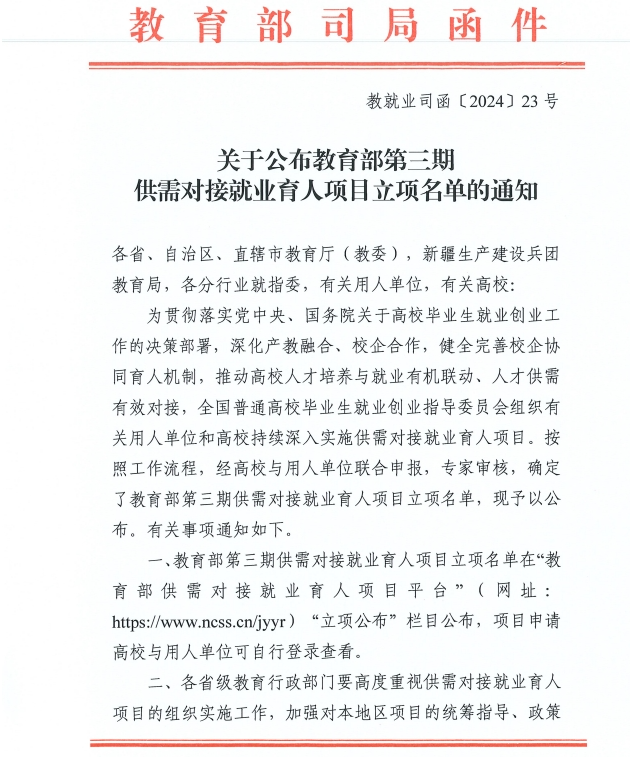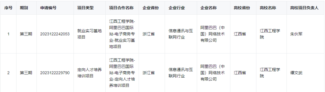 2024年6月14日,教育部高校学生司公布第三期供需对接就业育人项目立项名单,由我校数字经济产业学院谭文武、朱伙军两位老师带领团队申报的阿里巴巴国际站就业实习基地项目和阿里巴巴国际站定向人才培养培训项目正式获批立项。它们的正式获批反映了学院致力于提升学生就业能力和职业发展潜力的坚定承诺。