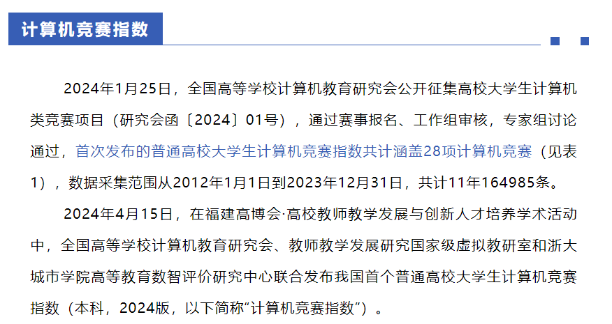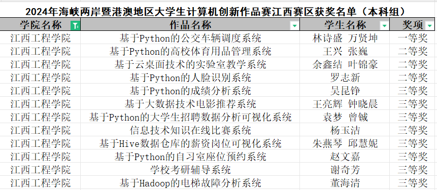 据悉,江西省大学生计算机作品赛由江西省计算机学会、江西省计算中心、江西省科技基础条件平台中心共同举办。本项赛事作为“海峡两岸暨港澳地区大学生计算机创新作品赛”地区选拔赛,涵盖34个省市(地区),每年均吸引各地上千所高校、数万名学生参与各区选拔赛,经过19年的发展已成为国内计算机学科领域颇具影响力的品牌赛事,2024年我国首个普通高校大学生计算机竞赛四星级项目。