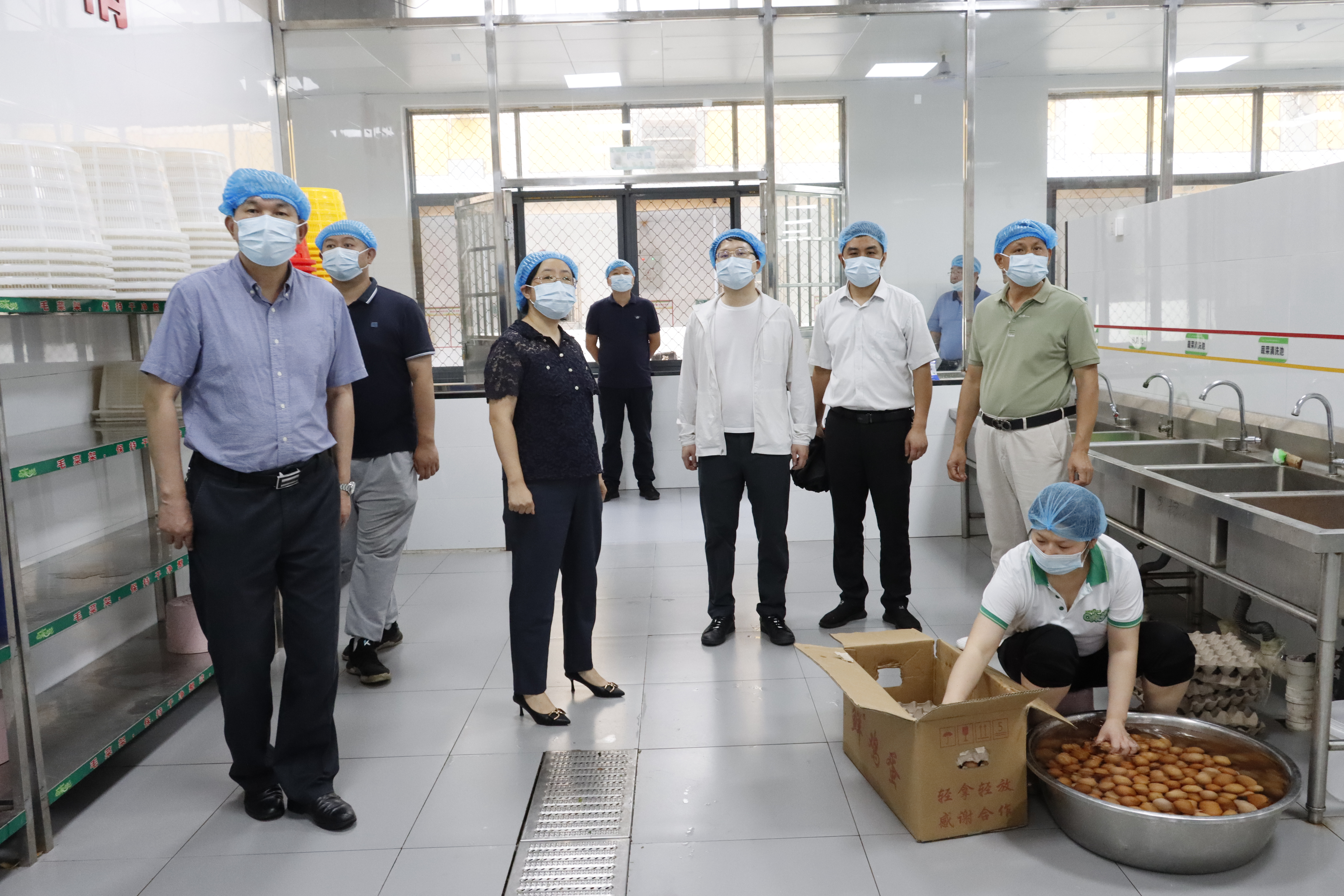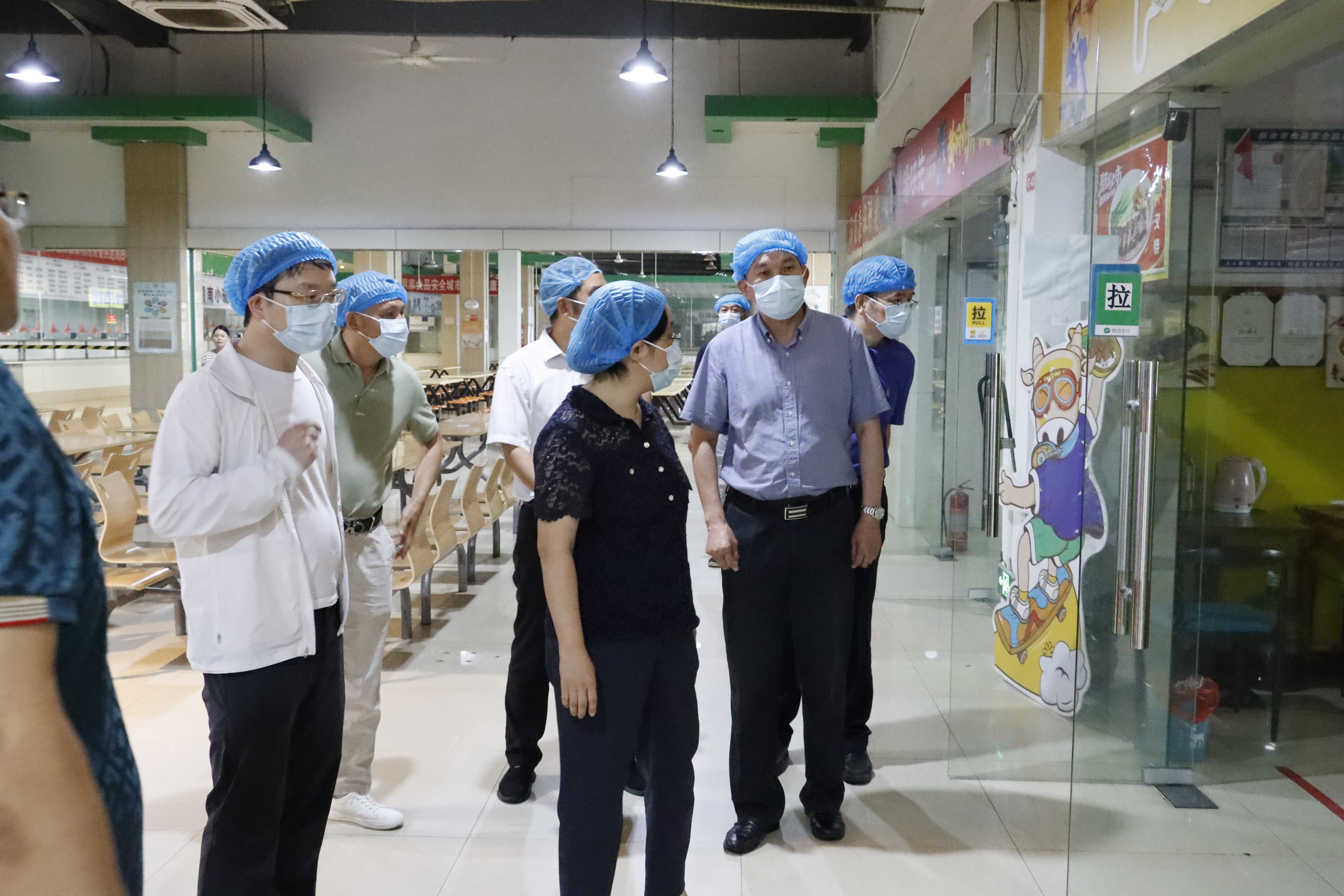 张志凤先后来到中心食堂公示墙、食材检测室、留样室、操作间、洗菜间和副食仓库以及特色餐饮档口等处进行实地调研,与相关工作人员进行深入交谈,详细了解我校在食堂食品安全等方面的经验和做法。
