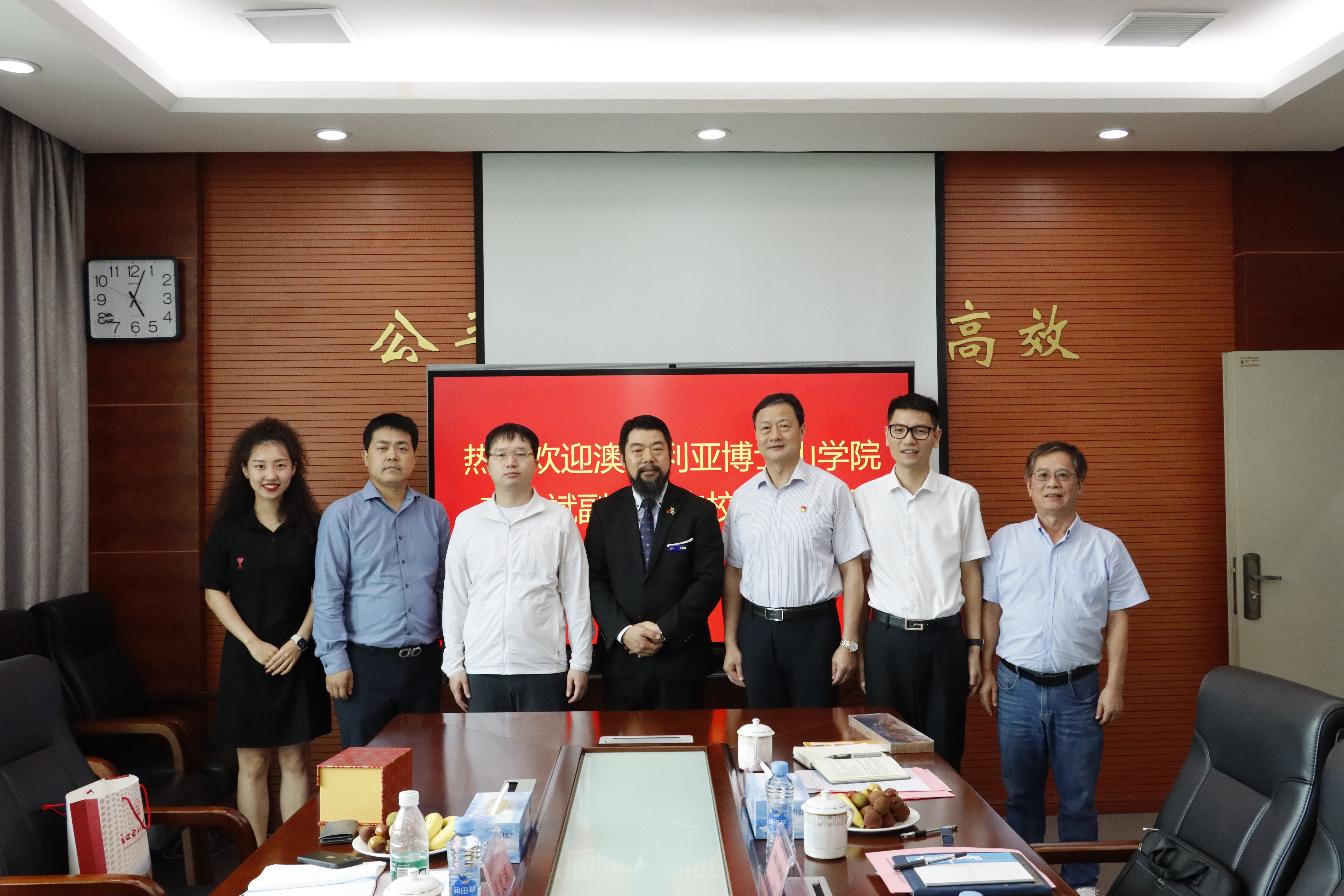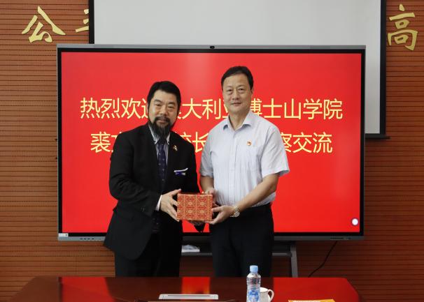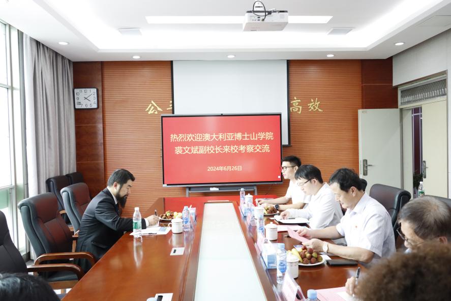 2024年6月26日,澳大利亚博士山学院副校长裘文斌来校考察交流,学校董事长杨显阳,党委书记、督导专员胡涌,党委委员、董事长助理、校长助理乐俊杰等陪同。