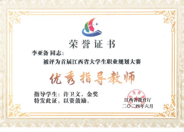 近日,江西省教育厅公布了首届江西省大学生职业规划大赛获奖名单,我校在六个项目中获奖,成绩喜人。智慧产业学院许卫文同学荣获成长赛道高教组金奖(指导老师:桂亚平、李亚备、冯赟),数字经济产业学院王琳同学荣获成长赛道高教组银奖(指导老师:李亚备、王长旺、谭文武),教育与健康管理学院陈钰同学荣获就业赛道高教组铜奖(指导老师:晏双平、陈居权、刘永东),我校荣获优秀组织奖,李亚备老师荣获大赛组织工作先进个人,桂亚平、李亚备、冯赟三位老师荣获大赛优秀指导教师。