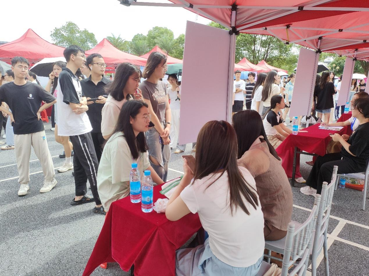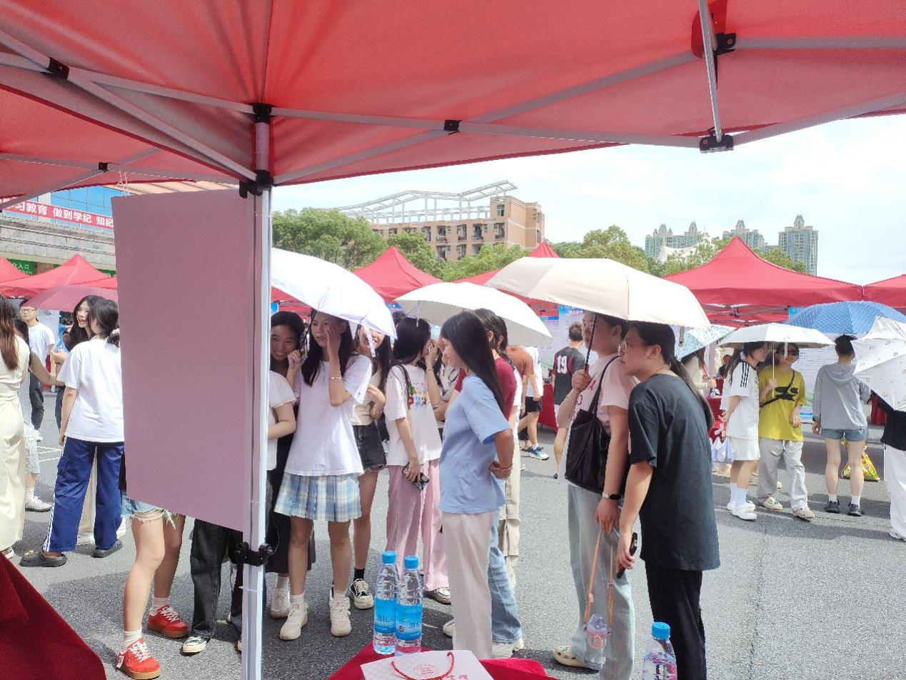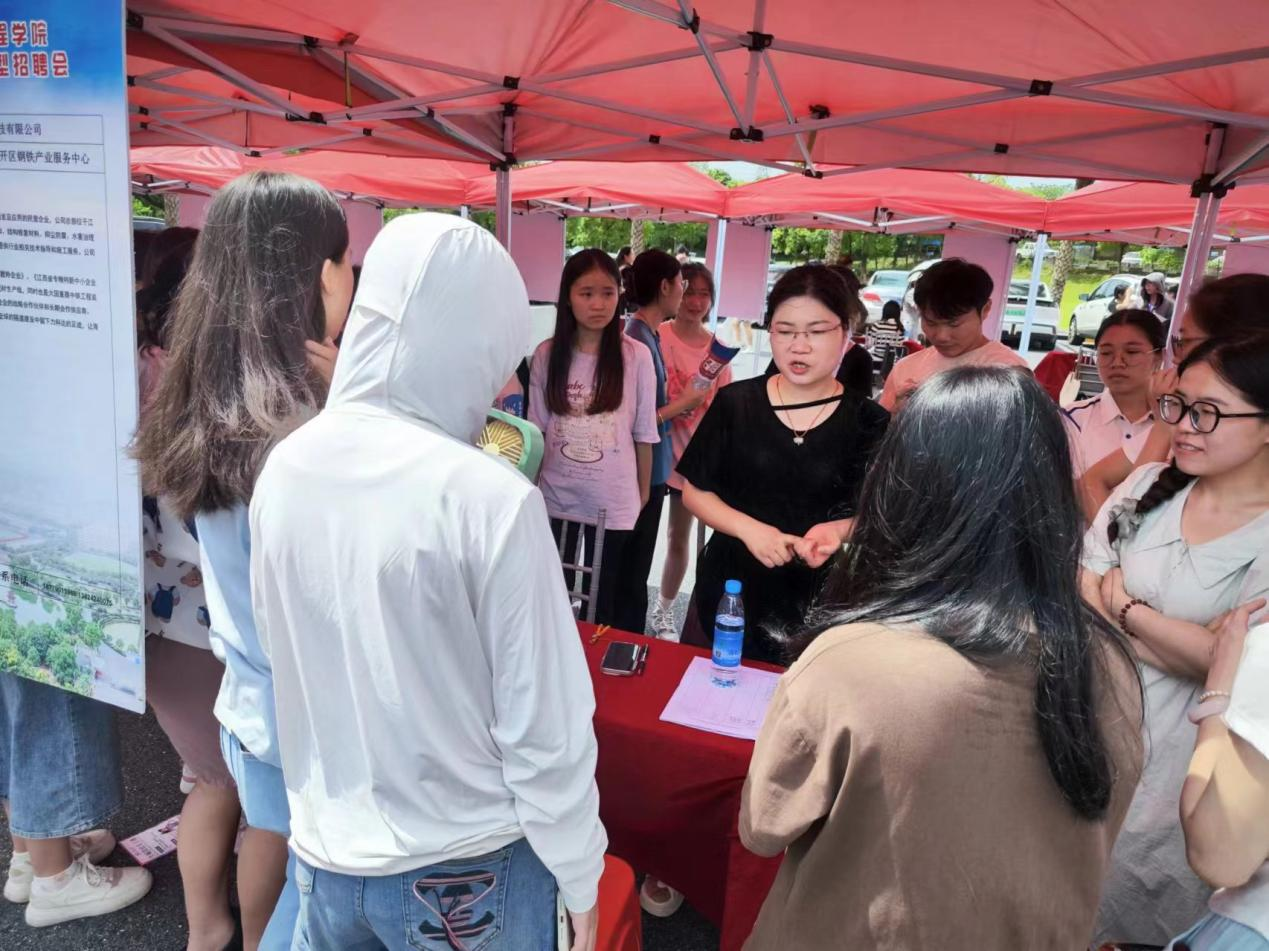 双选会现场人头攒动,气氛热烈。各招聘展位前挤满了前来咨询的学生,他们手持精心准备的简历,眼神中充满了对未来职业的期待。“您好,这是我的简历。”“请问公司地点在哪里?薪资待遇如何?”学生们积极地与招聘人员交流着。而各企业招聘人员也热情满满,不停地向学生介绍企业的管理制度、福利待遇、企业文化等,真诚地邀请毕业生加入他们的企业。
