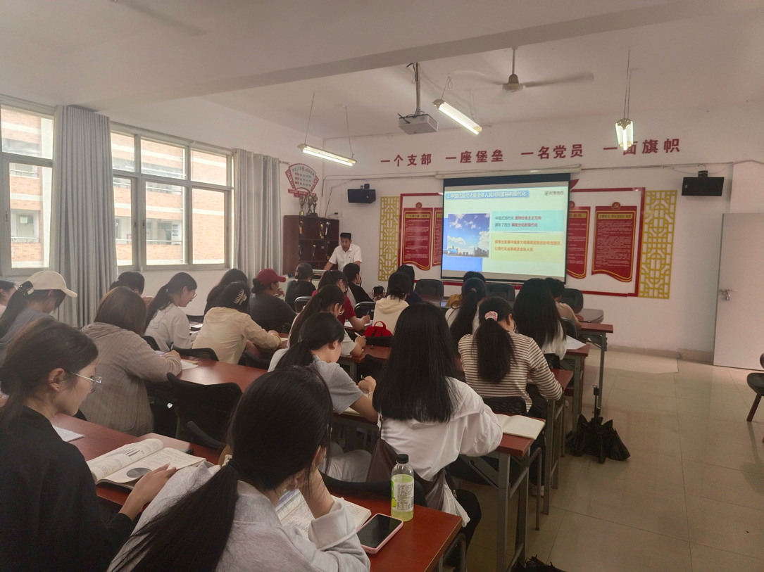 课上,刘先锋书记结合时事分析揭示了中国式现代化是人口规模巨大的现代化,是全体人民共同富裕的现代化,是物质文明和精神文明相协调的现代化,是人与自然和谐共生的现代化,也是走和平发展道路的现代化。习近平总书记在党的二十大报告中强调:在新中国成立特别是改革开放以来长期探索和实践基础上,经过十八大以来在理论和实践上的创新突破,中国共产党成功推进和拓展了中国式现代化。
