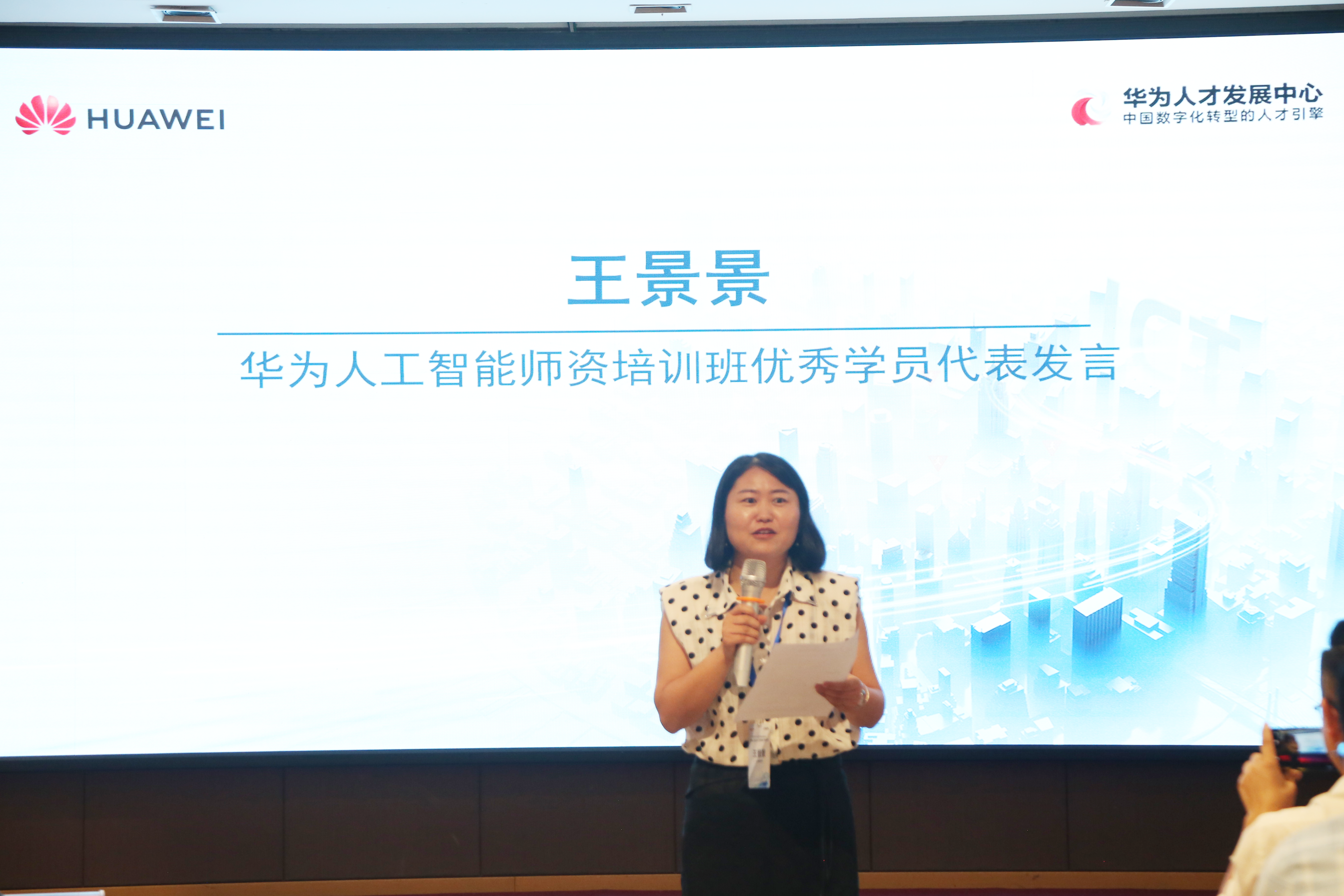 优秀学员代表上台分享了培训心得,他们感慨道,这次培训是一次难得的自我提升机会,不仅拓宽了技术视野,更深刻领悟到了创新教育的重要性。未来,他们将把所学化为育人的力量,为学生打开通往科技前沿的大门。同时,也感谢学校与华合作提供了这样一个平台,让他们能够不断提升自己的专业素养和综合能力。