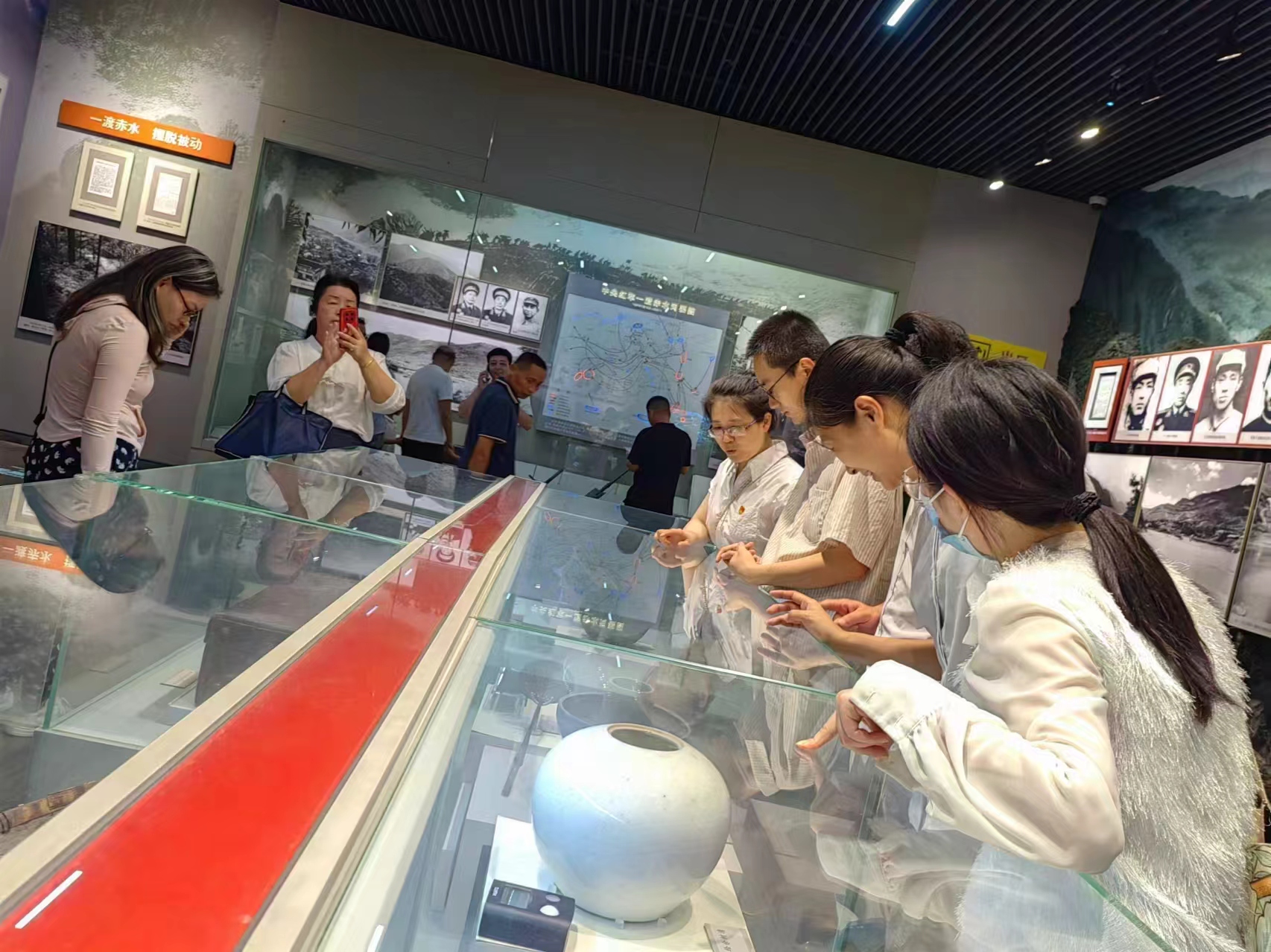 在遵义会议纪念馆,映入眼帘的是参与遵义会议的人物铜像,跟着讲解员的讲解,教师们参观了“战略转移”“遵义会议”“四渡赤水”“胜利会师”“永放光芒”等展区,教师们也学习了星火燎原、粉碎“围剿”、战略转移、血战湘江、黎平会议、猴场会议、突破乌江、遵义会议、四渡赤水、巧渡金沙江、强渡大渡河、飞夺泸定桥、长征、胜利会师等板块内容,进一步深入学习领悟中国共产党带领红军不畏艰险、艰苦奋斗、勇往直前、无坚不摧的长征精神,更加深入了解到了中国共产党进行革命的艰难历程,深刻领悟红军长征和遵义会议伟大转折的历史意义。